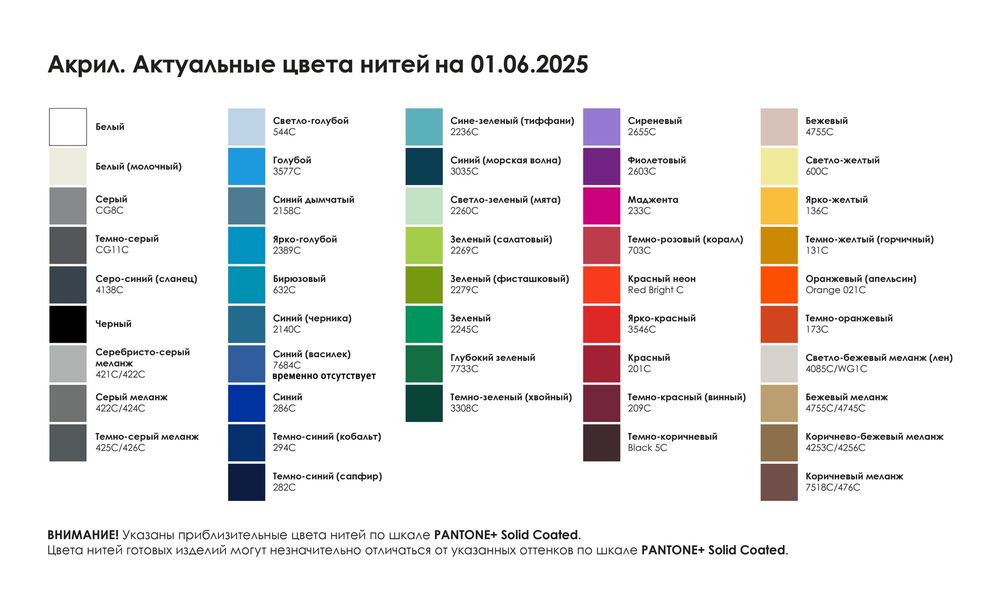 Цвет: выберите цветовое решение по таблице «Актуальные цвета нитей» (на фото).