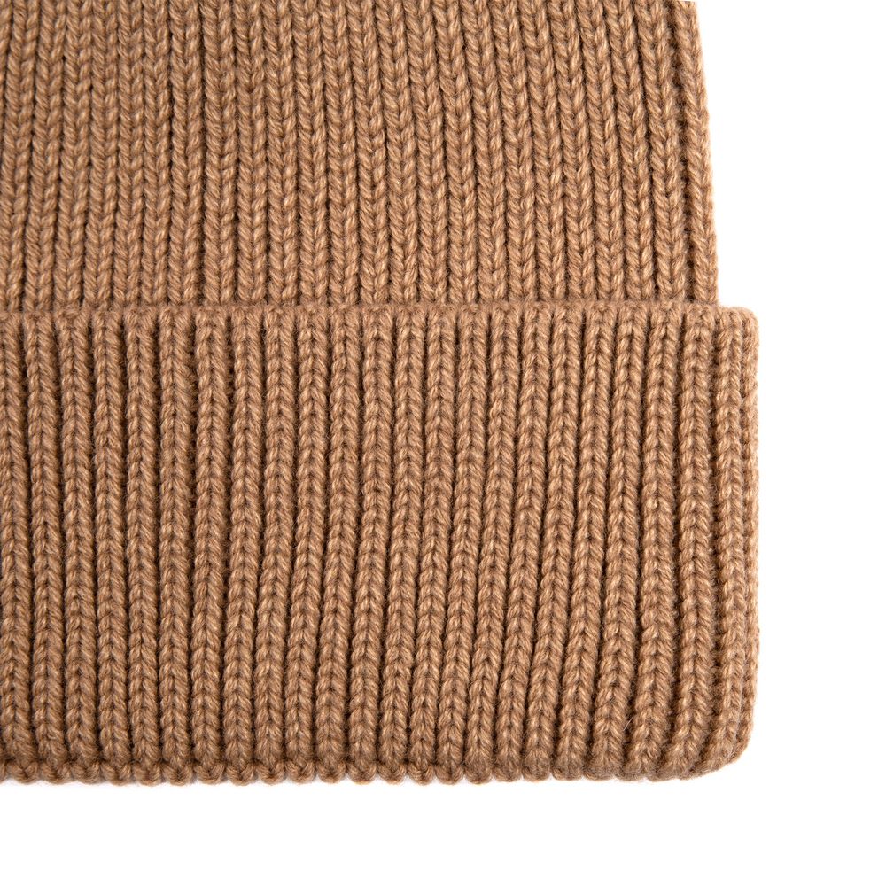 Однослойная шапка рельефной вязки с отворотом.