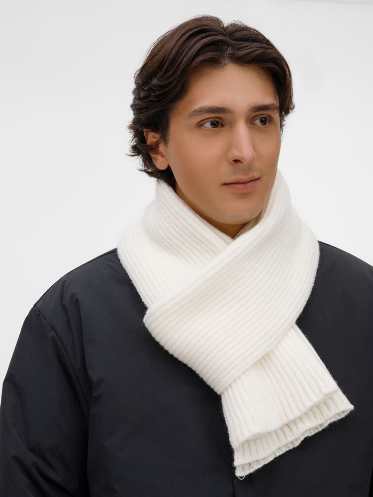 Рельефный шарф актуальных приглушенных оттенков будет универсален как для мужчин, так и для женщин. Оптимальный по длине и ширине, он подойдет для разных способов завязывания, а значит, принесет разнообразие в повседневный стиль.