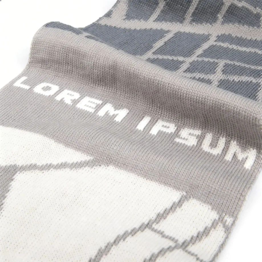 Шарф с вывязанным логотипом и индивидуальным рисунком в фирменной цветовой гамме.