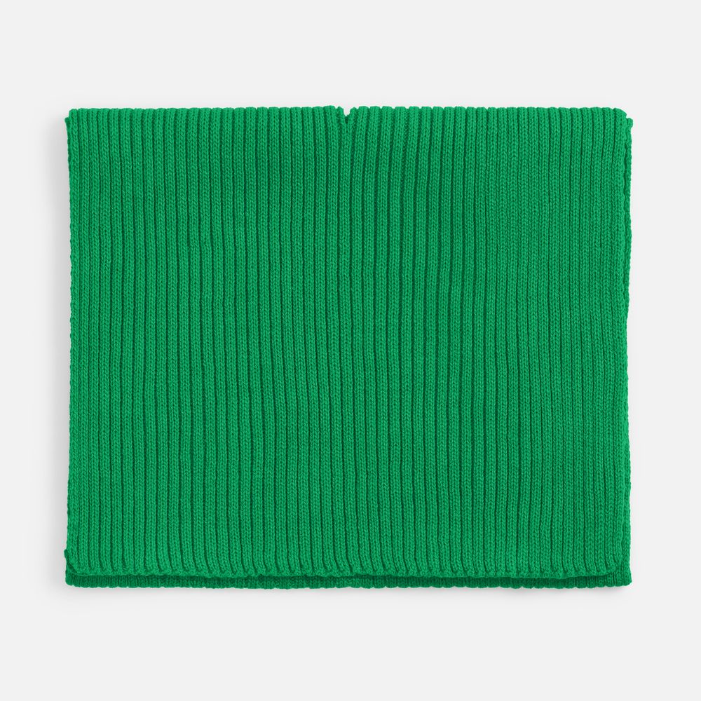 Однослойный шарф фактурной вязки с отверстием для быстрого и удобного завязывания.