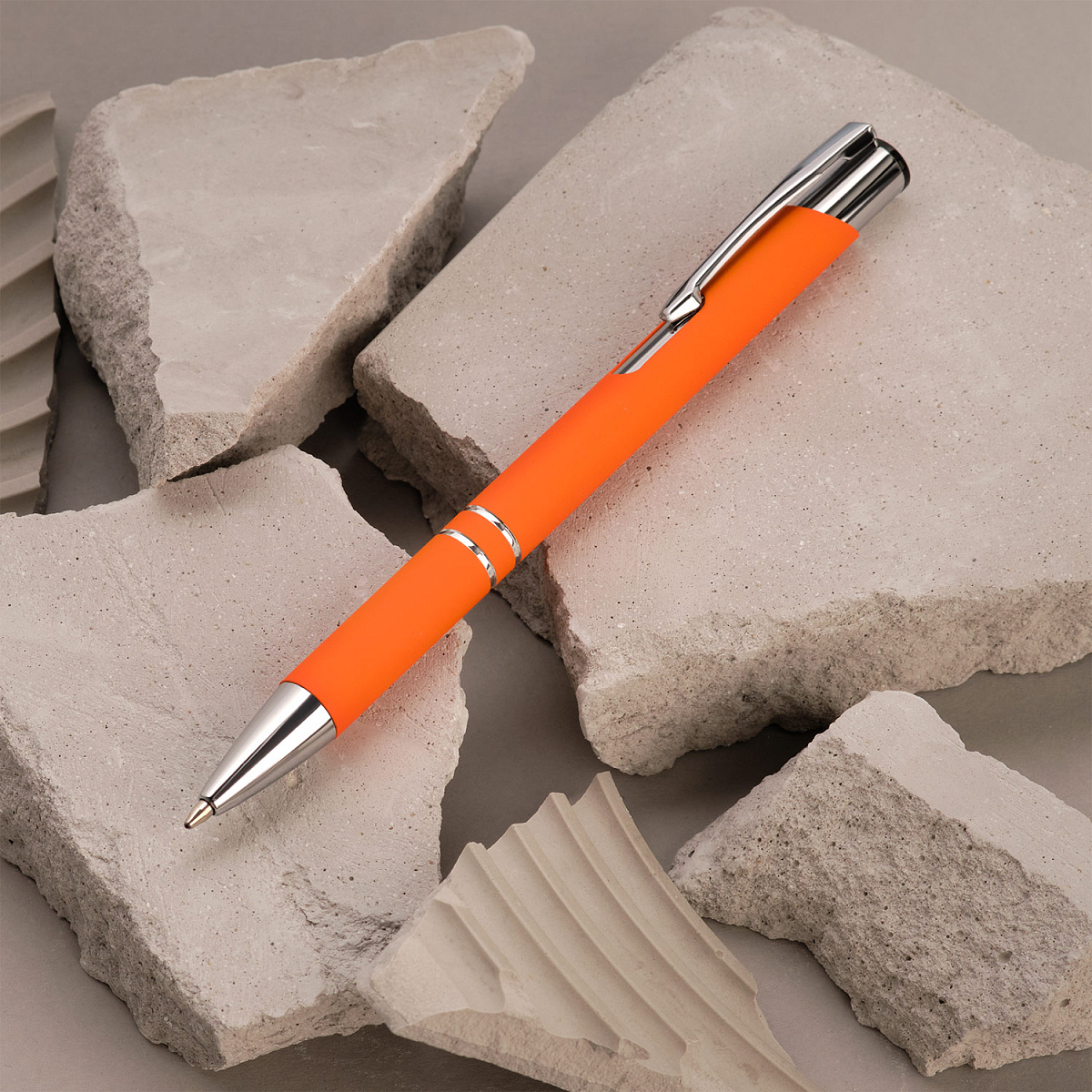 Классическая ручка в шелковистом покрытии Soft Touch станет прекрасным инструментом для письма. Хромированные детали – два декоративных кольца и функциональный надежный клип.