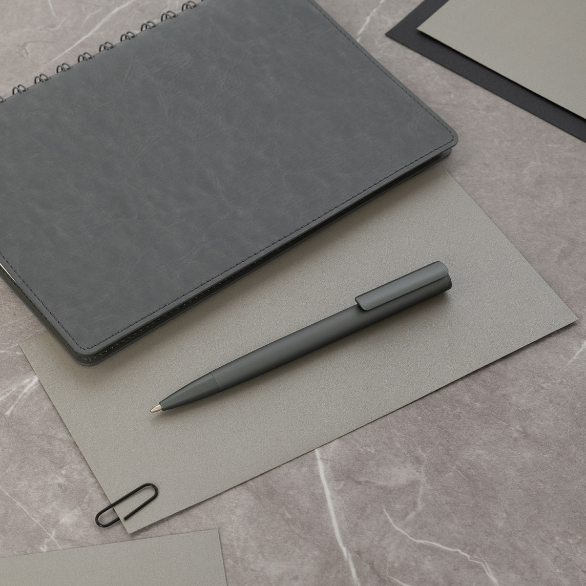 Минималистичный дизайн корпуса эффектно дополнен покрытием Софт-тач метталик, которое удачно гармонирует с металлик деталями. Стержень легко выдвигается благодаря нажимному механизму клипа-слайдера, ручка не скользит в руке и комфортно ощущается при письме за счет покрытия. Плавно пишущие синие чернила Documental (Германия) обеспечивают качественное и мягкое письмо.