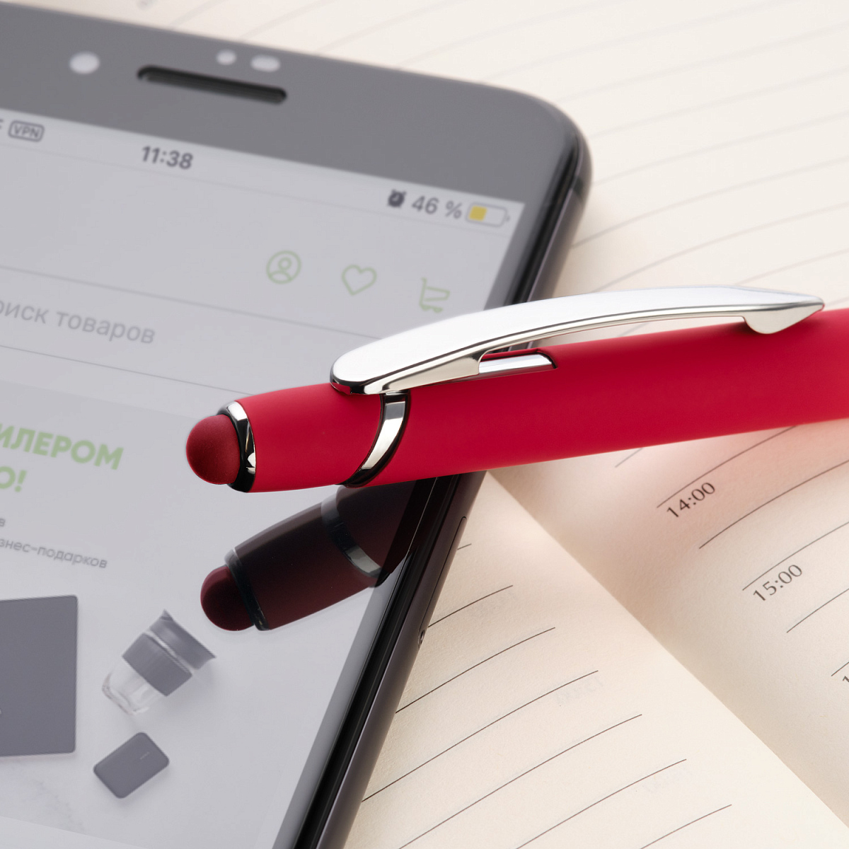 Отделка: хромированные детали, функциональный, надежный клип, оснащен стилусом для работы с сенсорными экранами