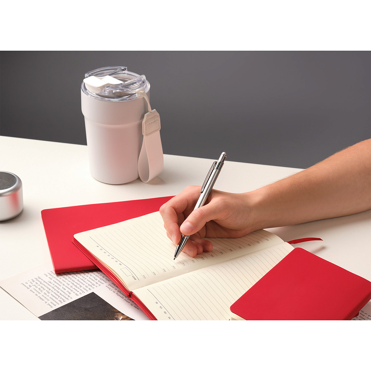 Тонкая, идеально сбалансированная ручка приятно лежит в руке. Оснащена стилусом для работы с сенсорными экранами.
