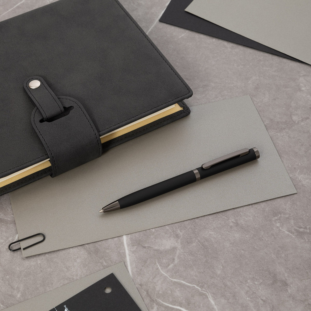 Классическое матовое софт-тач покрытие корпуса обрамляется качественной хромированной отделкой, которая добавляет ручке изящности. Стержень легко выдвигается благодаря поворотному механизму, ручка не скользит в руке и комфортно ощущается при письме за счет покрытия. Плавно пишущие синие чернила Documental (Германия) обеспечивают качественное и мягкое письмо.