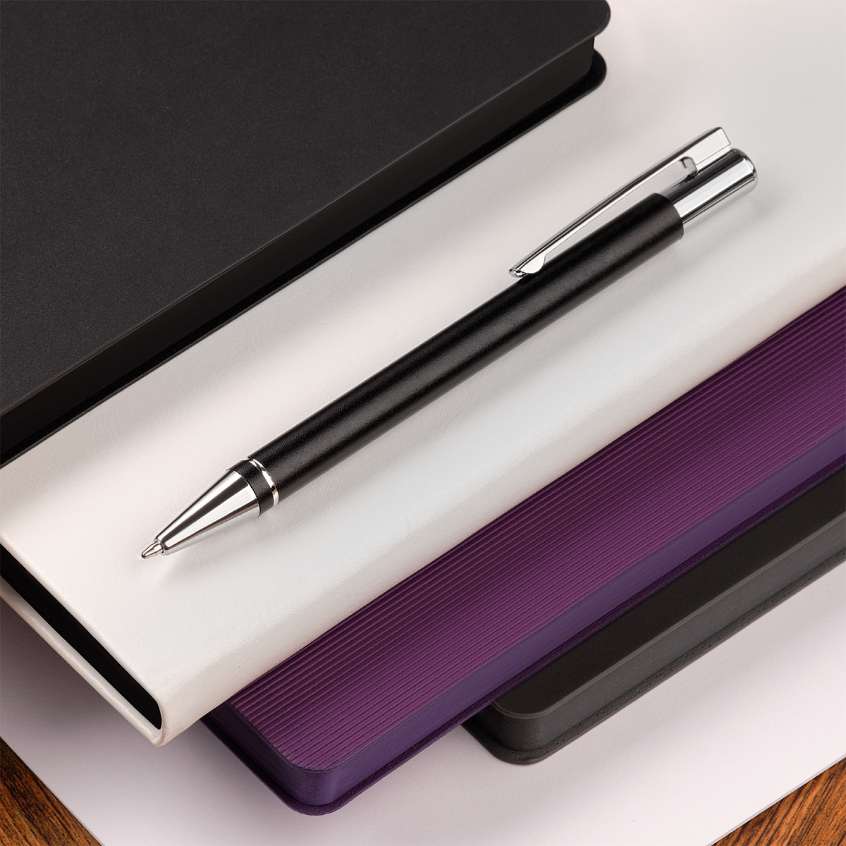 Классическая ручка эргономичной формы выполнена в строгом стиле. Декоративные детали в виде хромированного кольца у основания и клипа придают ручке элегантность.