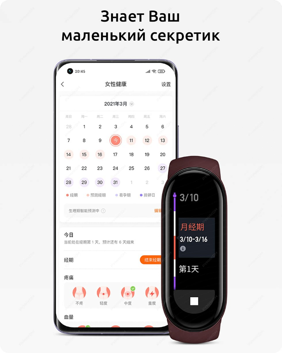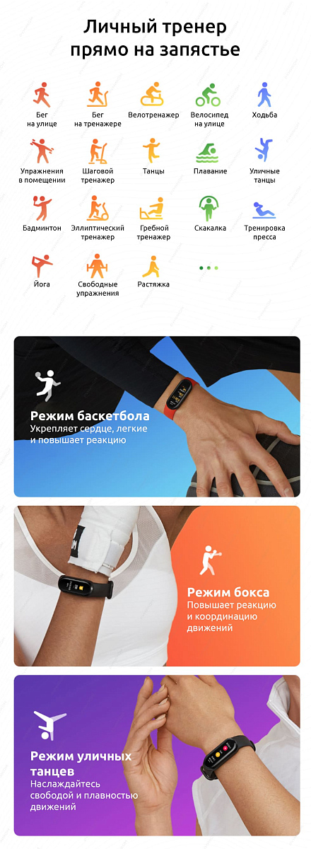 Особенности: ключевыми особенностями Xiaomi Mi Band 6 являются большой 1,56’’ AMOLED дисплей, автоматическое распознавание 6 видов спорта, круглосуточное отслеживание сердечного ритма, уровня стресса и качества сна, а также мониторинг уровня кислорода в крови; смарт-браслет способен работать до 14 дней без подзарядки