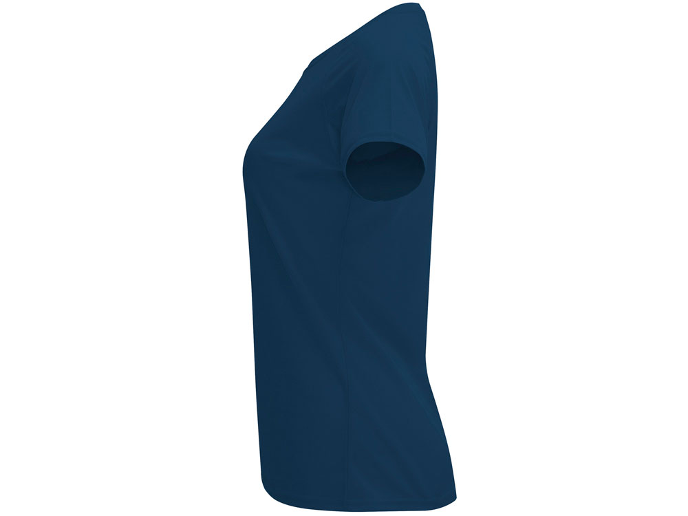 Спортивная футболка с коротким рукавом реглан для женщин. Круглый вырез горловины с отделкой плоским швом. Рукав сложного кроя для обеспечения дополнительного удобства при занятиях спортом. Отделка плоским швом с застилом по пройме и рукавам. Технологичное полотно с функцией DRY CONTROL и защитой от UV излучения