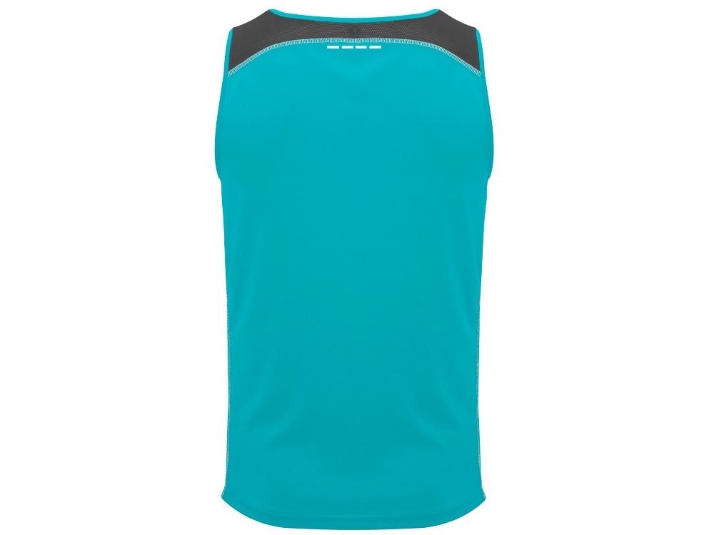 Спортивная майка со светоотражающими деталями. Круглый вырез горловины укреплен декоративной строчкой. Комбинация двух полиэстеровых полотен: основное полотно интерлок, боковые и верхние вставки из микроперфорированного полотна для повышенной воздухопроницаемости. Технологичное полотно быстро сохнет.