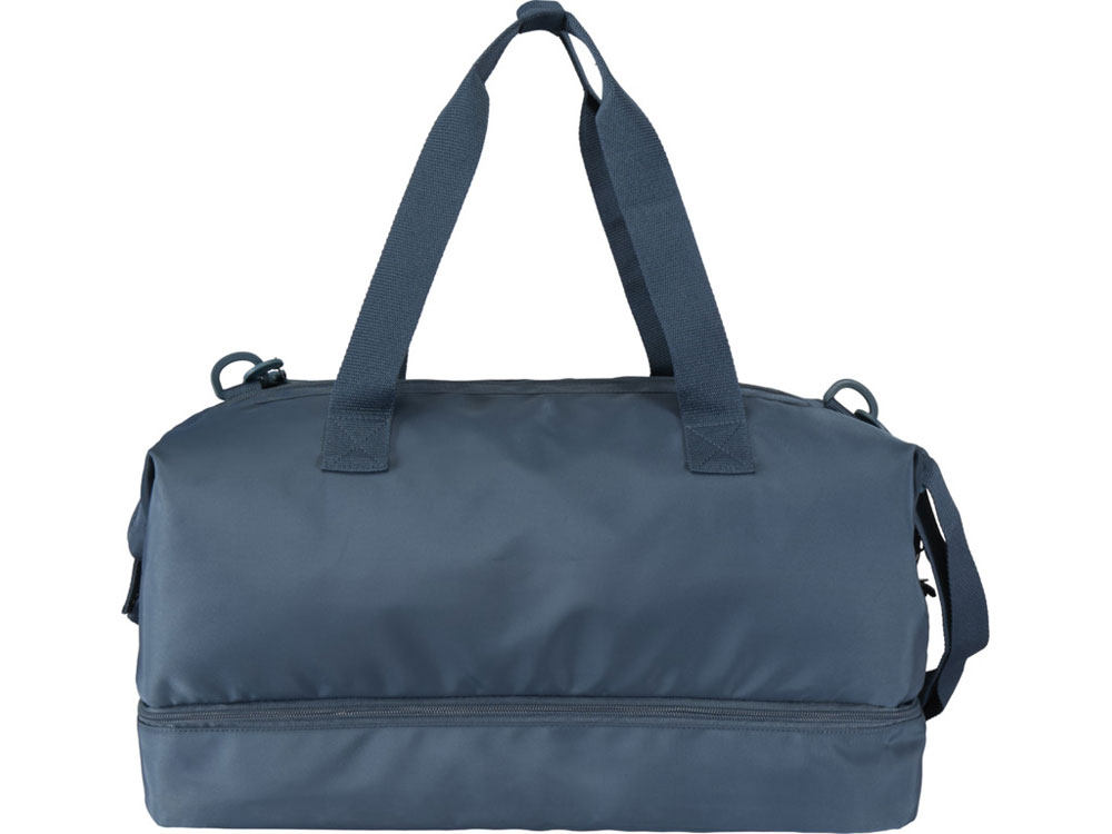 Спортивная сумка Трип Эви из переработанного материала — это универсальный и вместительный спутник, который идеально подходит для коротких поездок и позволяет с легкостью переносить все необходимое. Изготовлена из прочного полиэстера саржевого переплетения плотностью 290D с мягкой трикотажной основой и подкладкой из материала RPET плотностью 210D/PU и разработана для практичного использования и комфорта. Основное отделение включает в себя большой карман на молнии со специальными отделениями для паспорта, ручек и цепочки для ключей, а также два внутренних кармана-слайдера и два держателя для бутылок с водой. Отдельное нижнее отделение открывается по принципу раскладушки и идеально подходит для хранения обуви или разделения вещей. Каждая сумка также поставляется с индикатором Aware™. Эта инновационная функция позволяет пользователям отслеживать происхождение и путь своего товара с помощью QR-кода, повышая прозрачность цепочки поставок и способствуя более прочной связи между продуктом.