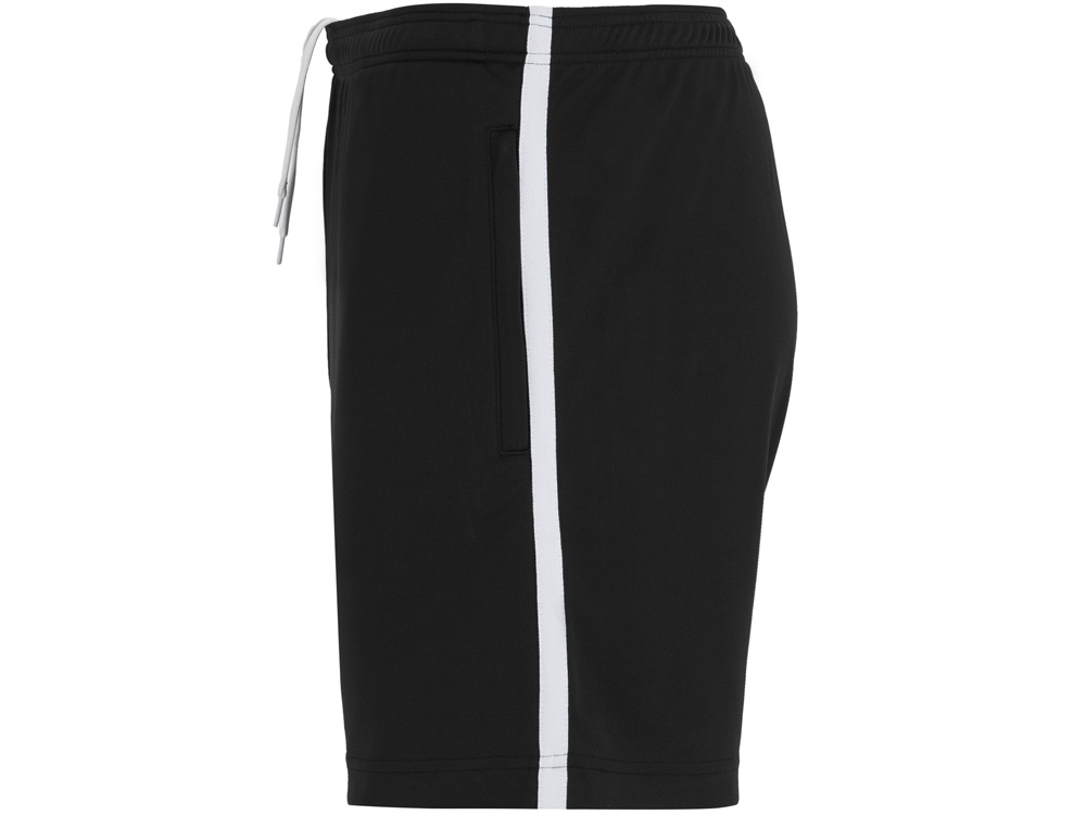 Спортивные шорты. Боковые карманы застегиваются на молнию. Эластичный пояс с контрастным регулируемым шнурком. Легкий и дышащий материал, подкладка из сетки. Контрастные лампасы в боковых швах.