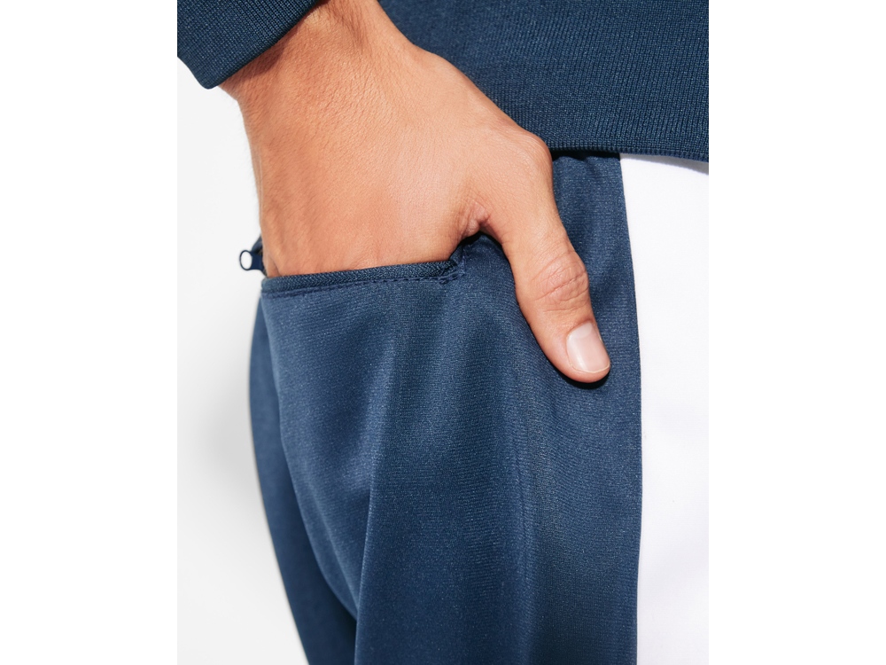 Cпортивный костюм с олимпийкой и брюками. - Высокий воротник. - Горловина, манжеты и низ из риба 1 x 1. - Молния по центру в тон с бегунком. - Боковые карманы кофты на молнии. - Контрастные лампасы по бокам. - Брюки с эластичным поясом со шнурком для регулировки по талии, двумя боковыми карманами. - Карман сзади на молнии. - Низ с эластичными манжетами из риба 1 x 1.