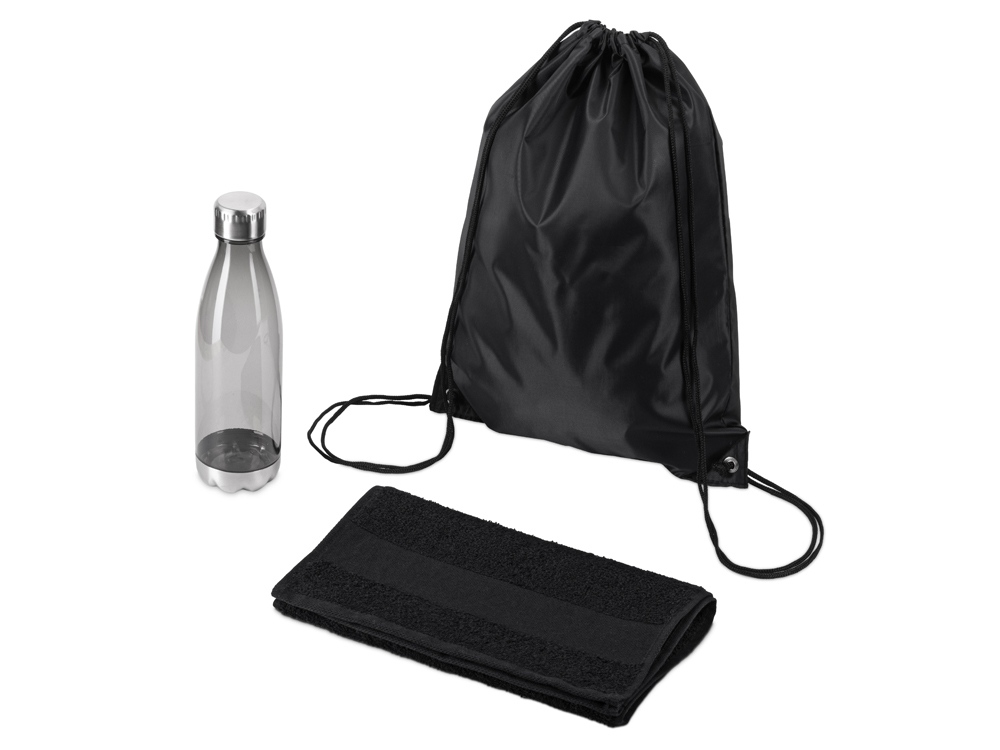 Универсальный спортивный набор будет актуален в любом виде спорта. Бутылка для воды позволит брать с собой не только воду, но и тонизирующие напитки или коктейли и поможет освежиться в любой момент. Тритан, из которого изготовлена бутылка, не искажает вкус и запах напитков, являясь абсолютно безопасным для человека.