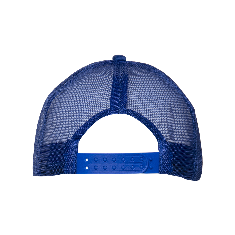 Бейсболка-тракер без лобового шва с жёстким изогнутым козырьком, плотность прилегания регулирует надежная пластиковая застежка. Передний клин и козырек усилены поролоном, благодаря чему модель имеет узнаваемый характерный силуэт.