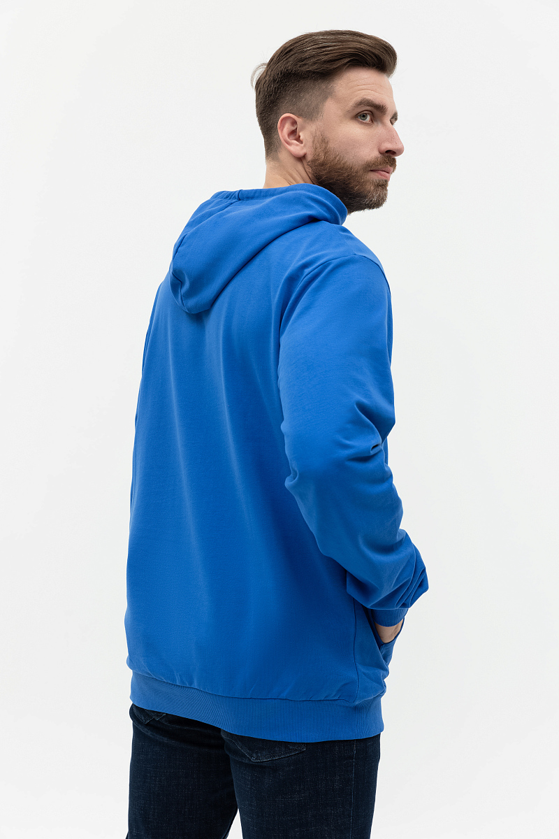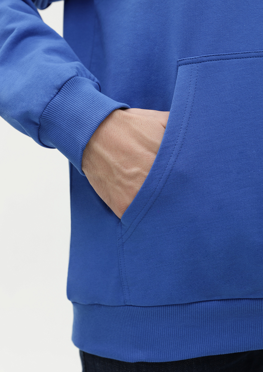 Толстовка без начеса выполнена из мягкого футера (100% хлопок), подклад – кулирная гладь (100% хлопок). Оба материала устойчивы к механическому воздействию и вытяжению, практически не поддаются пилингу.