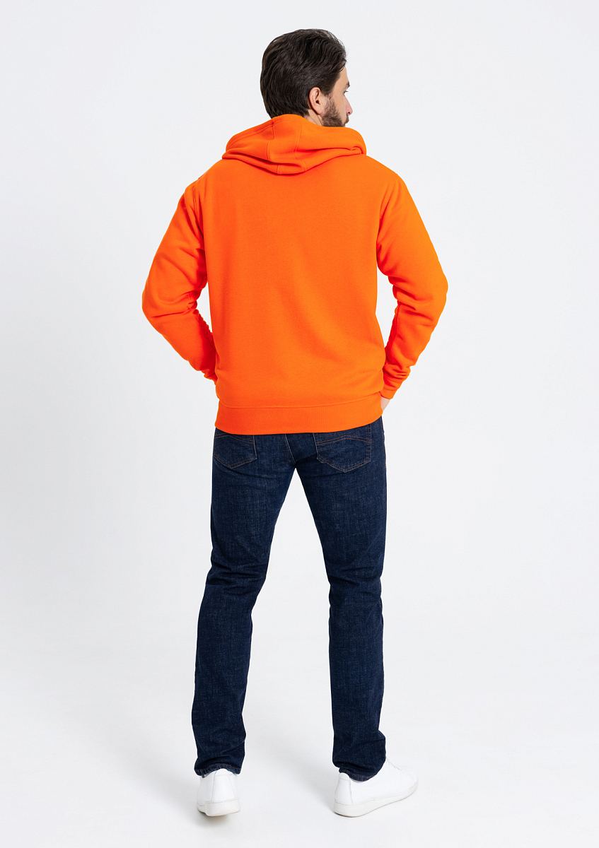 Мужская толстовка прямого силуэта с капюшоном комфортной глубины, втачным рукавом и накладным карманом. Капюшон дополнен шнурком для регулирования прилегания, манжет и низ изделия оформлены широкой эластичной резинкой.