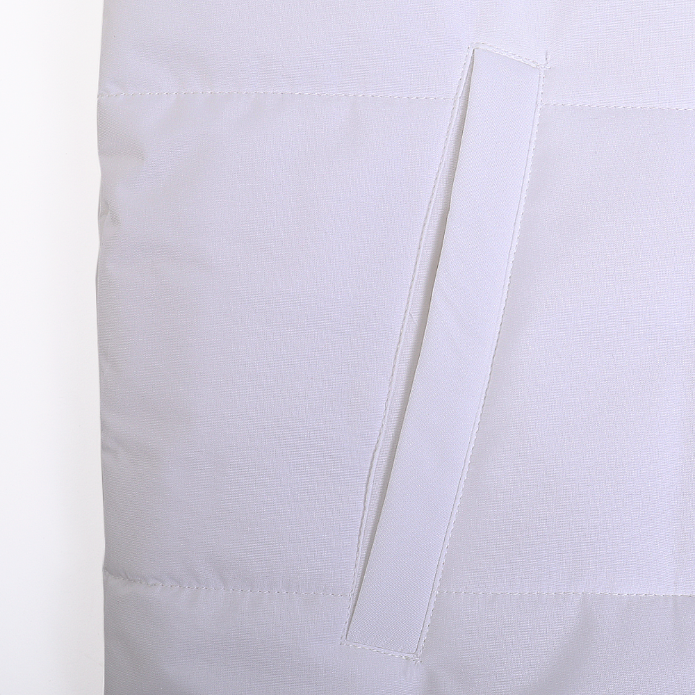 Утеплённый жилет полуприлегающего силуэта с воротником стойкой, центральной застежкой на молнию в тон основному полотну и прорезным карманом с листочкой. Подклад выполнен в цвет основного материала, утеплитель надежно зафиксирован прострочкой по груди и спинке.