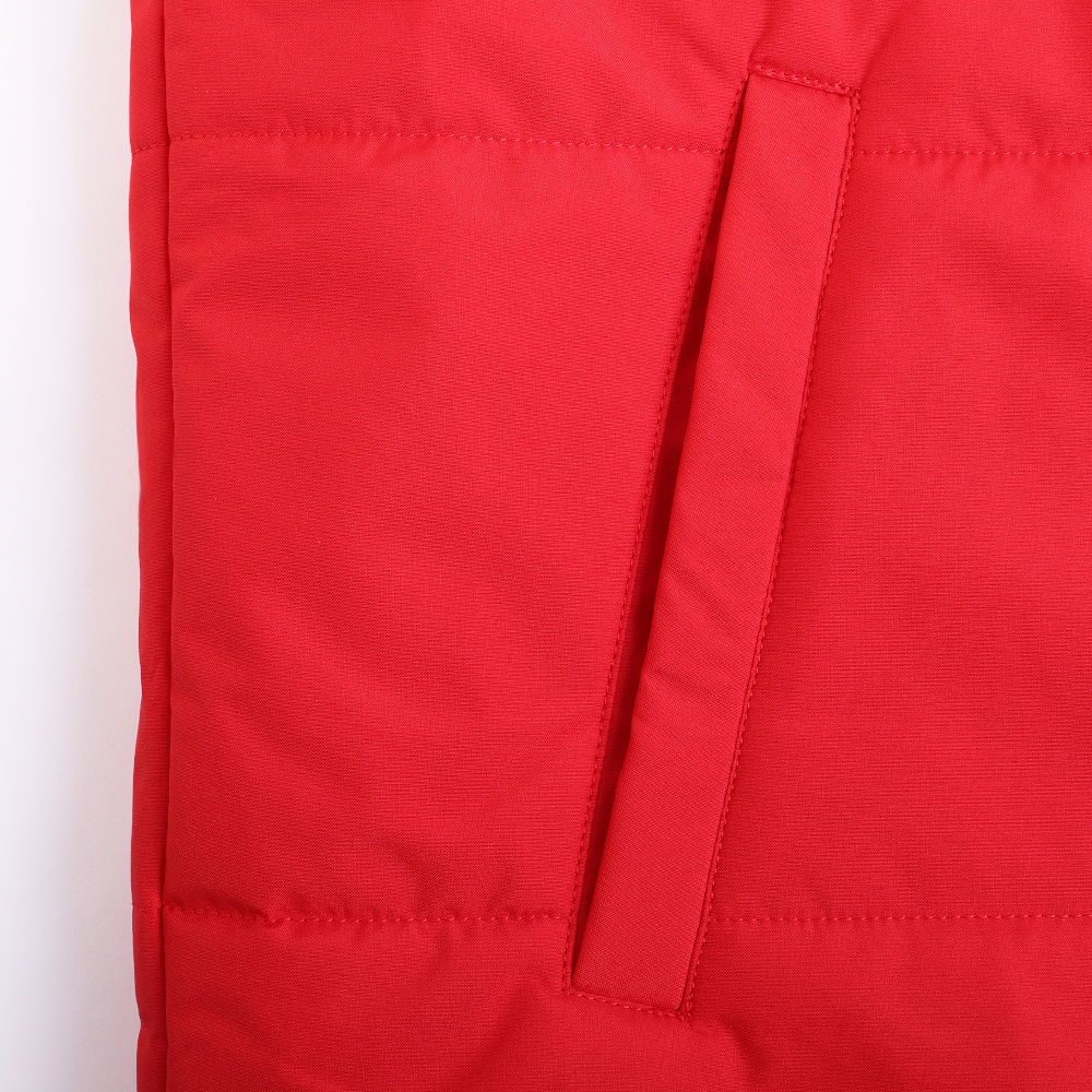 Основной материал – 80% хлопок, 20% полиэстер. Хлопок обеспечивает мягкость и воздухопроницаемость, а полиэстер отвечает за износостойкость. Шелковистый материал обработан водоотталкивающей пропиткой для дополнительного комфорта в непогоду. Утеплитель – синтепон: легкий, не сковывает движения и сохраняет тепло.