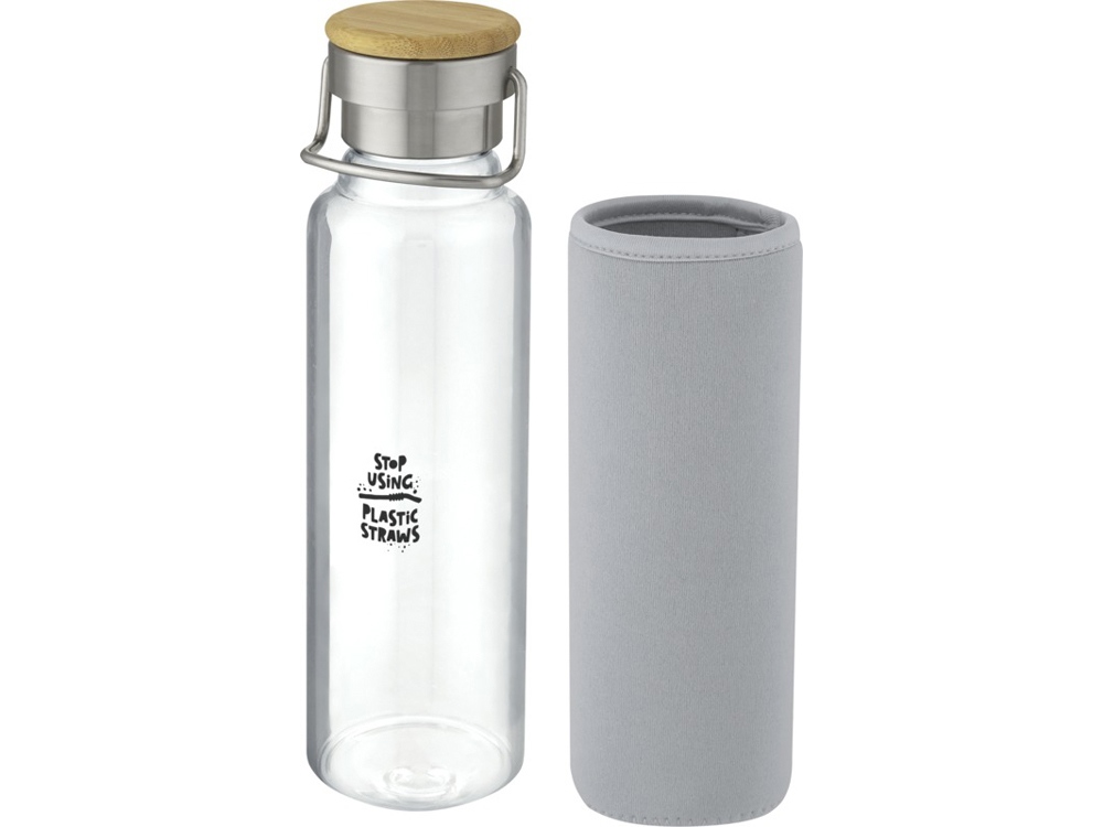 Одностенная бутылка из боросиликатного стекла с неопреновым защитным чехлом. Имеет съемную крышку с бамбуковым колпачком и ручку для удобной переноски. Бутылка изготовлена из 100% прочного боросиликатного стекла, которое не содержит вредных химических веществ и сохраняет свежесть напитка. Не содержит БФА, испытана и одобрена в соответствии с немецким законодательством о безопасности пищевых продуктов (LFGB). Проверена на содержание фталатов и одобрена для использования в соответствии с правилами REACH. Бамбук используется из устойчивых, экологически и социально ответственных источников. Объем 660 мл. Сняв неопреновый чехол и крышку, бутылку можно мыть в посудомоечной машине. В подарочной коробке из переработанного картона.