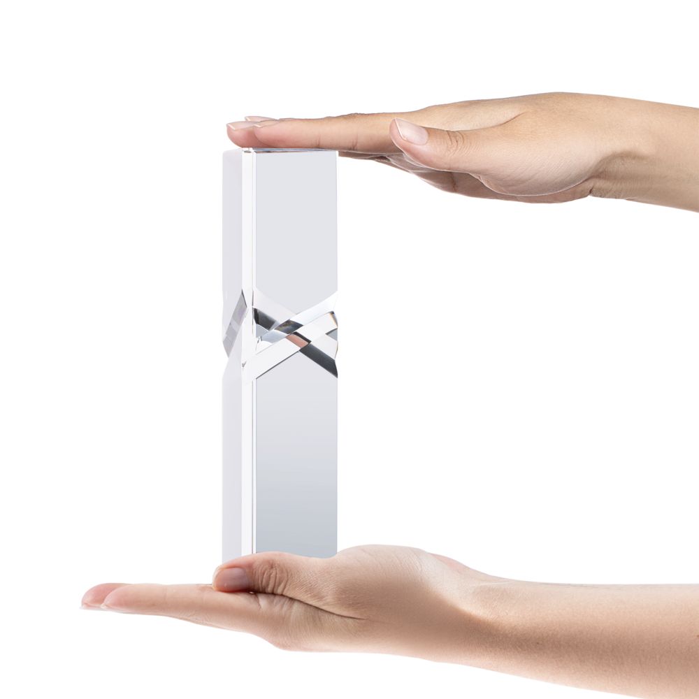 Стела изготовлена из стекла К9, в основе которого лежит оптическое боросиликатное стекло. Эту марку стекла отличает низкий процент посторонних включений, высокий показатель преломления и высокая прозрачность — идеальные качества для изготовления наград премиального уровня.Поставляется в подарочной коробке.
