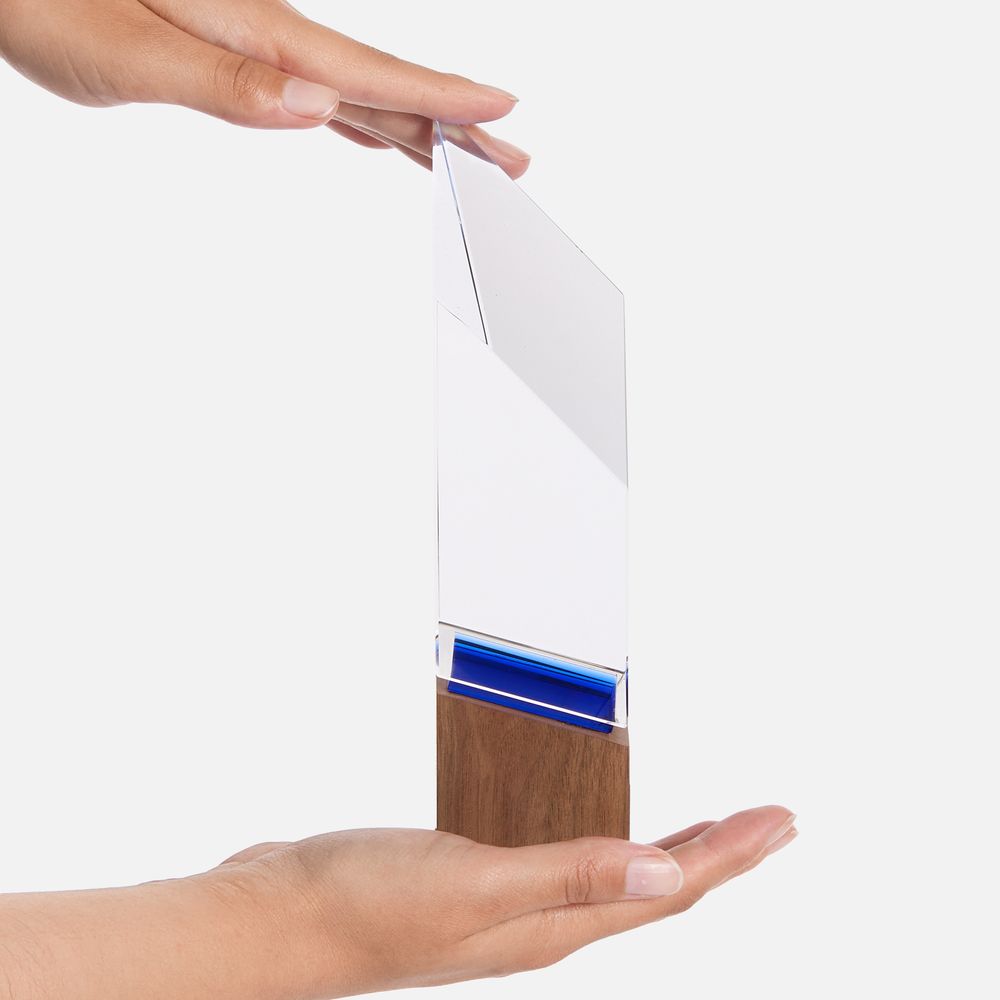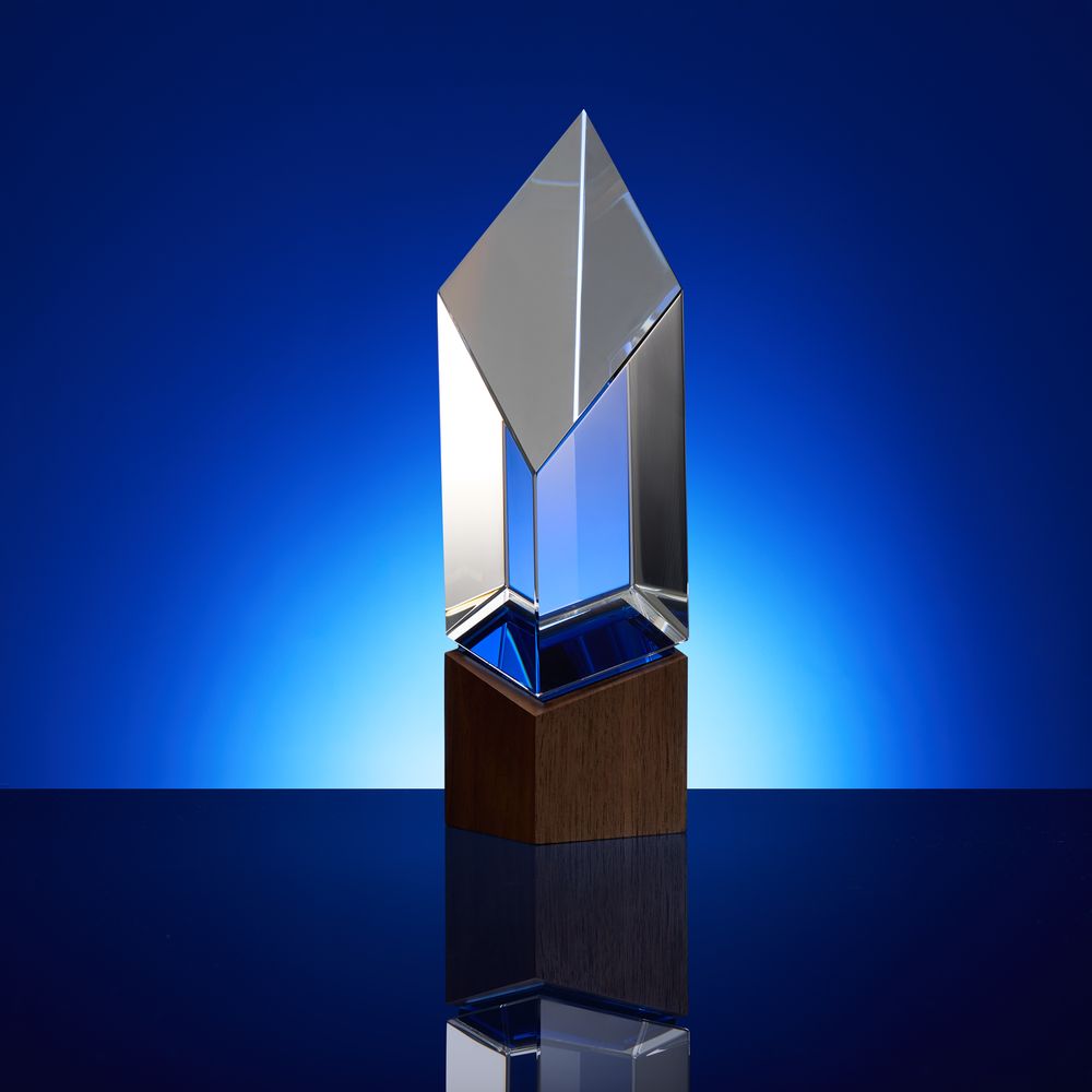 Эффектная стела на лаконичном деревянном постаменте Vincero создана для тех, чье дело сверкает разными гранями, а победный дух всегда ведет за собой! Внутри призматической стелы создается притягательная оптическая иллюзия, которая придает ей дополнительный объем и весомость. Такая геометрическая магия и игра света зачаровывают, воплощая собой все стороны таланта, которые привели получателя награды к заслуженному успеху.