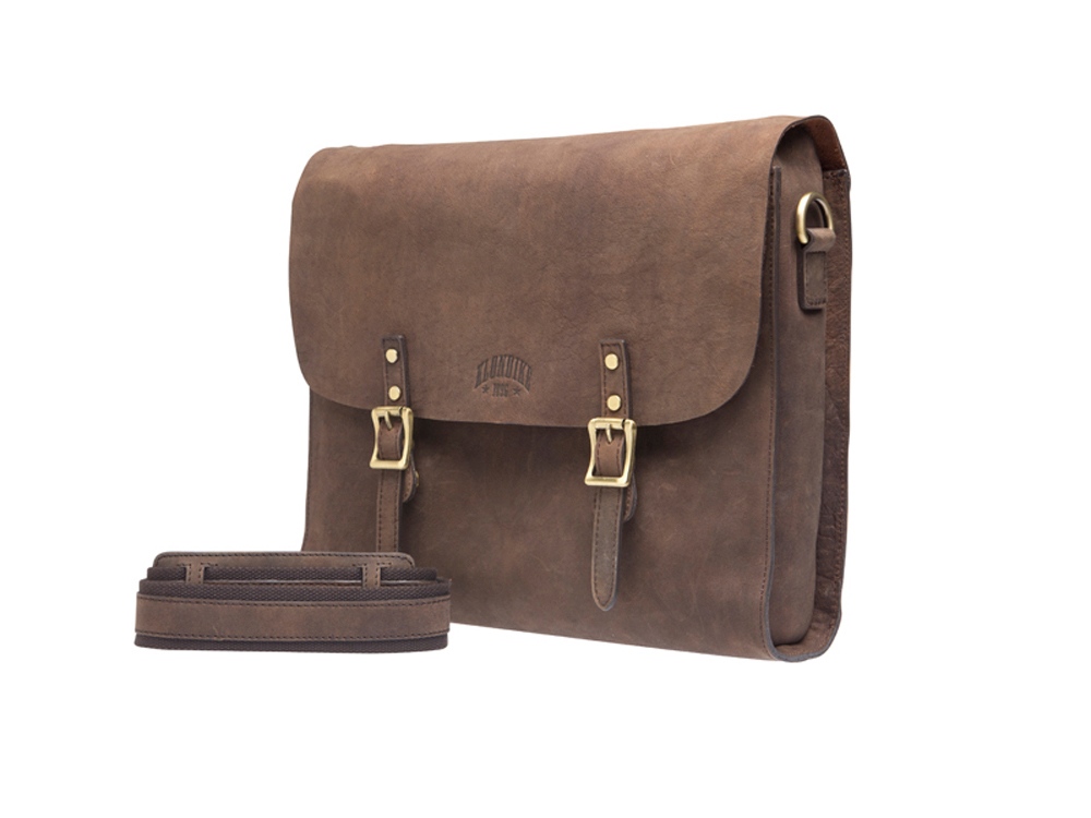 Сумка мужская Brett закрывается на два магнитных заклепки, стилизованные под ремни, включает в себя съемный регулируемый ремень на плечо, со смягченной частью для плеча, мягкое отделение для ноутбука размером 32х24 см, одним скрытым отделением на молнии, двумя карманами для ручек и двумя дополнительными карманами для документов.