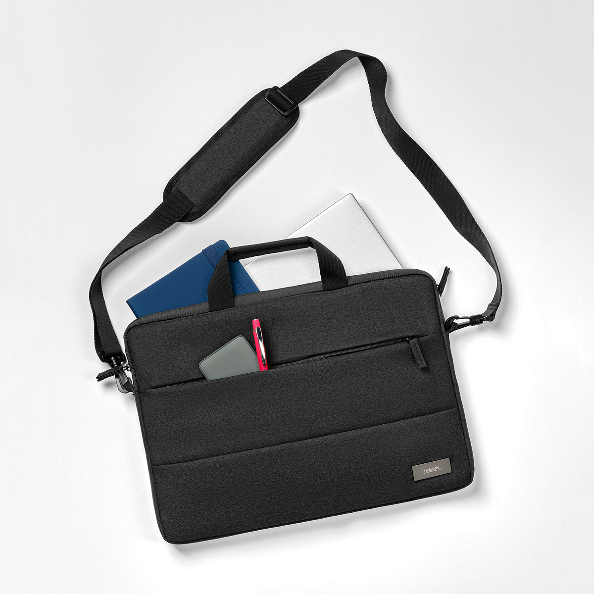 Основное отделение для ноутбука с диагональю до 15,6 дюймов оснащено мягкими вставками для защиты при транспортировке. В комплекте удобный регулируемый плечевой ремень. Крепкие ручки и съемный плечевой ремень обеспечивают комфорт при носке.