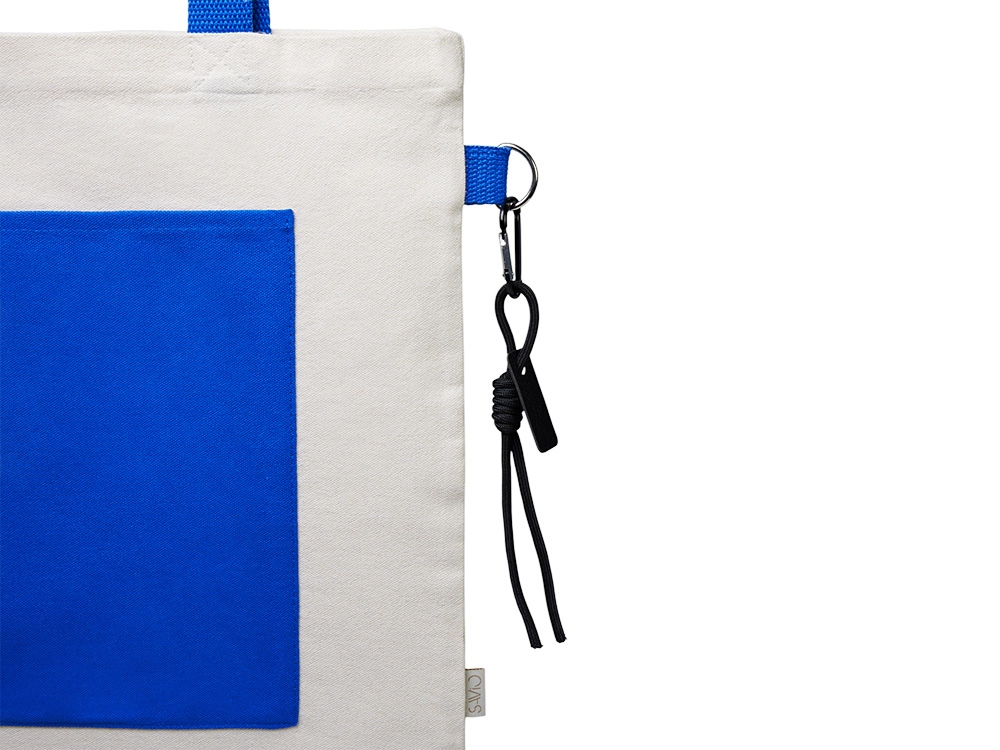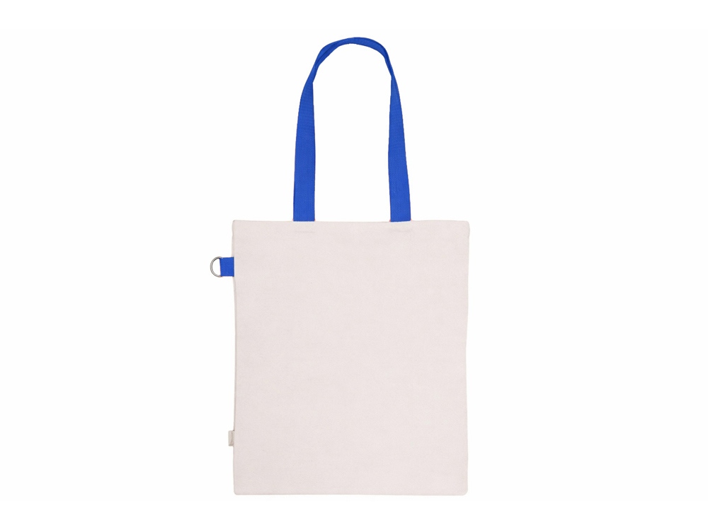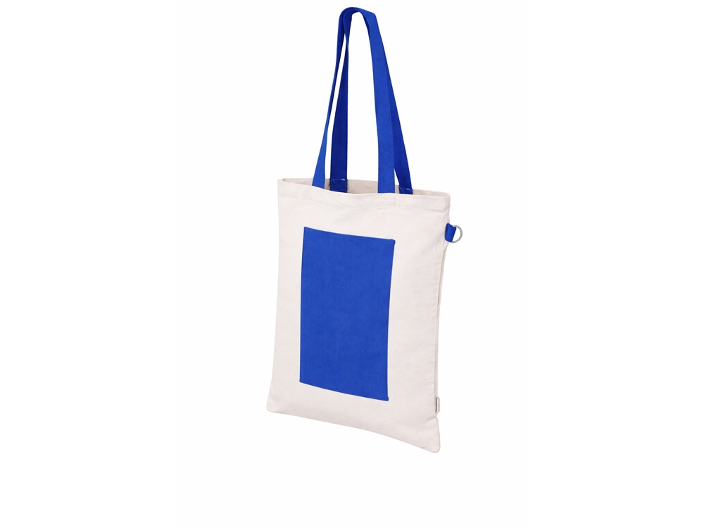Сумка-шоппер из полностью переработанных материалов с большим контрастным карманом спереди станет стильным аксессуаром для любого случай, как поход в магазин, поездка на пикник или в путешествие. Сбоку предусмотрено д-кольцо для крепления ремувок с вашим логотипом, выполненное из переработанного металла.