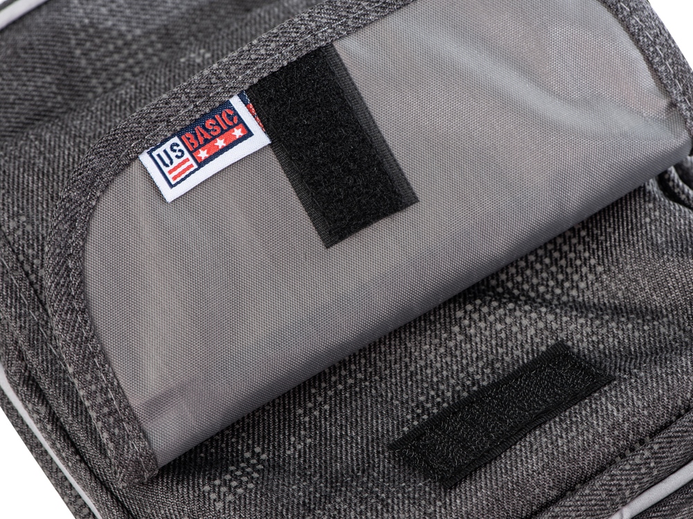 Материал сумки имеет светоотражающее камуфляжное нанесение. Спереди по краю сумки расположена светоотражающая полоса. Все это обеспечивает дополнительную безопасность в темное время суток.