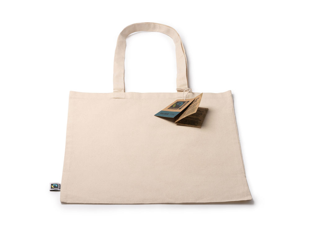 Сумка из 100% хлопка Fairtrade плотностью 180 г/м² с усиленными ручками длиной 70 см.