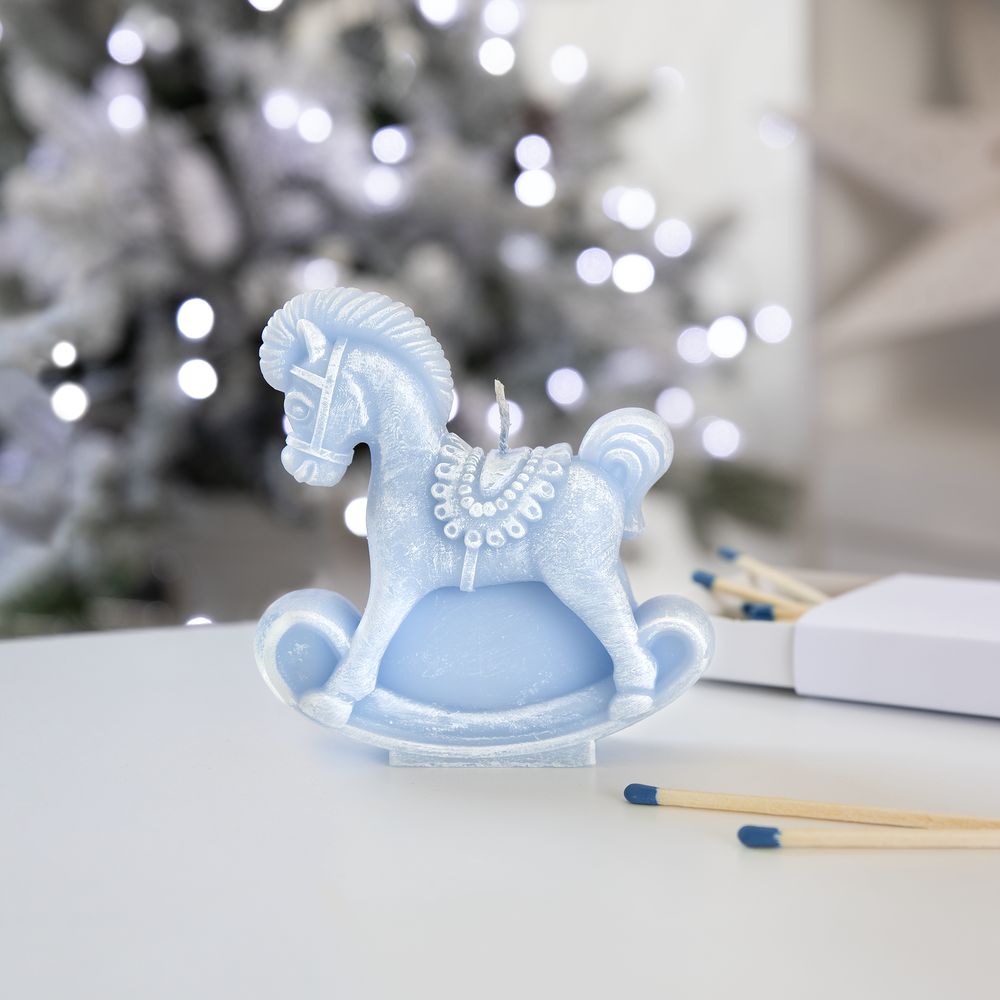 Свеча фигурная «Лошадка-качалка», голубая можно заказать в нашей компании по самой доступной цене от 330 рублей.