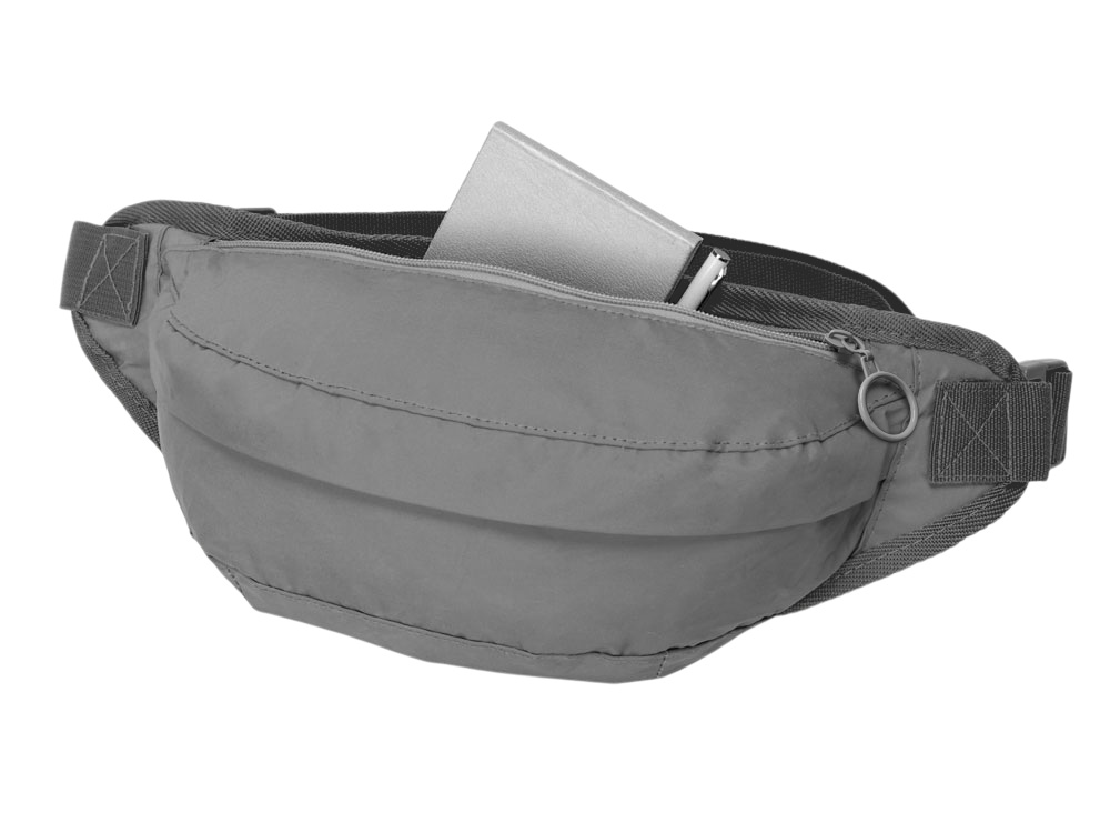 Вместительная поясная сумка увеличенного размера из светоотражающей ткани обеспечит дополнительную безопасность в темное время суток. Внутренний карман на молнии предназначен для хранения ценных вещей. Задняя часть сумки, прилегающая к телу, снабжена дышащей сеткой.