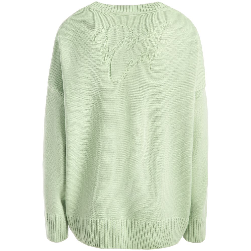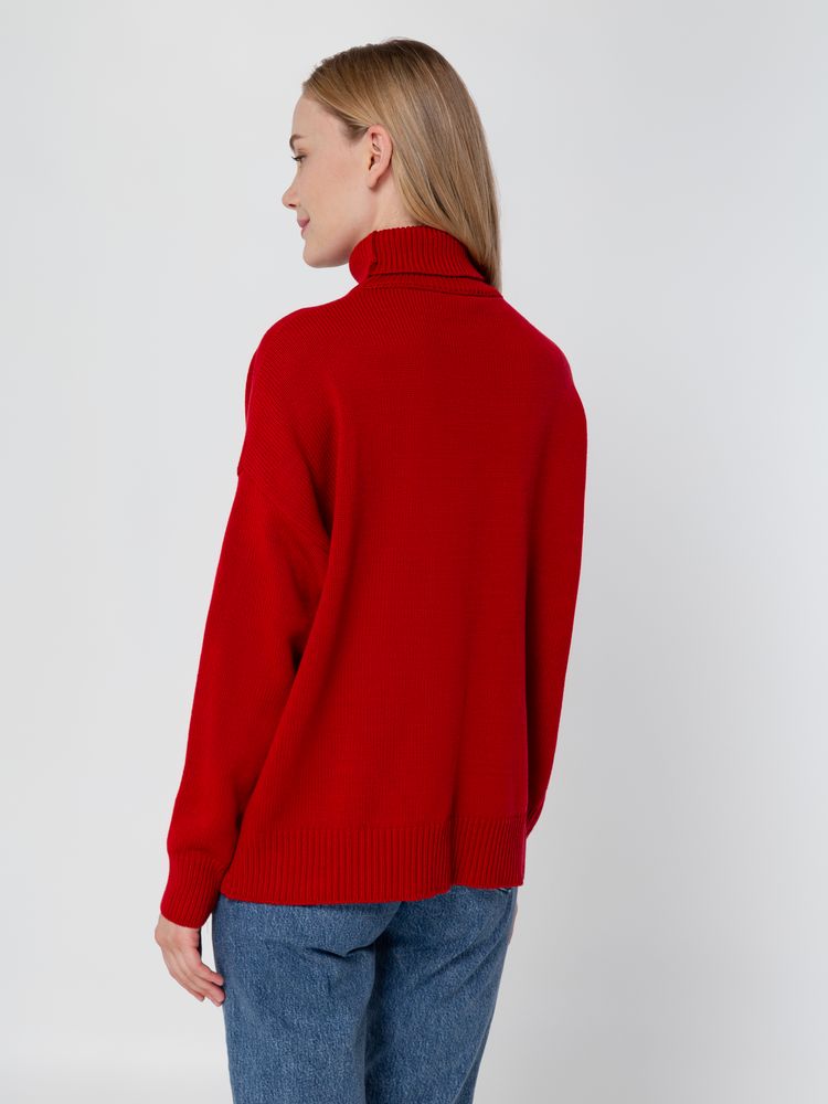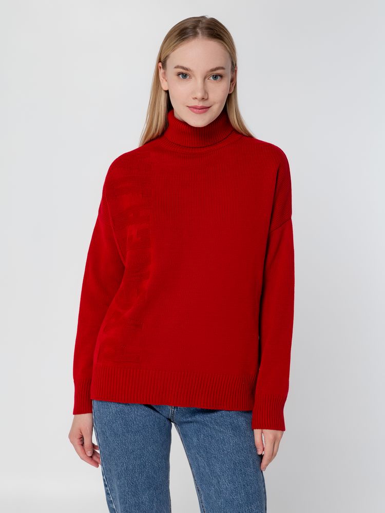 Однотонный свитер с фактурным вывязанным логотипом в фирменном цвете вашей компании.
