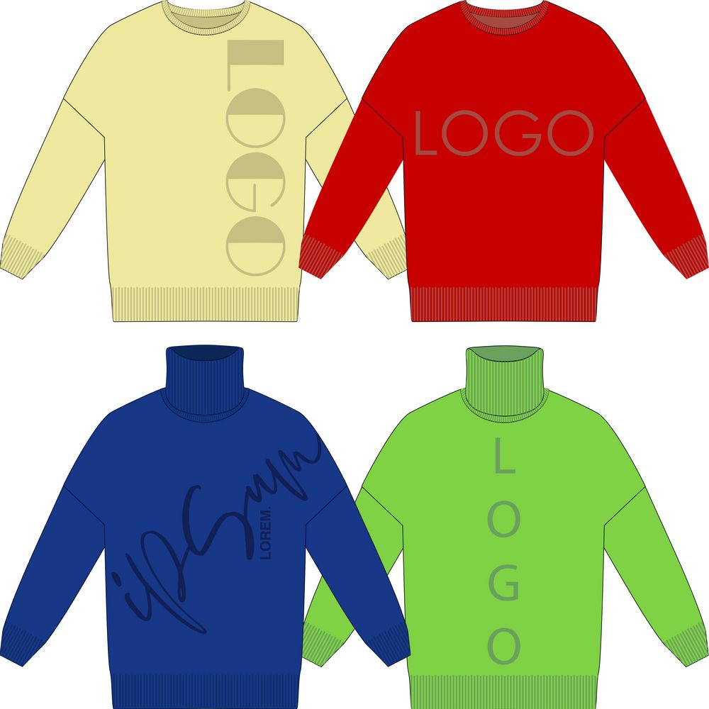 Модель: однотонный гладкий свитер унисекс, спущенное плечо, крупная петля. Чередуя различные типы петель на гладком полотне, можно вывязать любую графику: логотип, текст, товарный знак. Ворот, манжеты и низ изделия вывязаны резинкой.