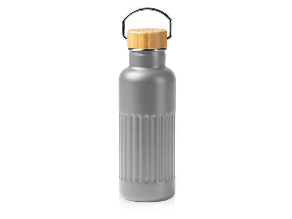 Термобутылка из переработанной нержавеющей стали 304 с двойными стенками и бамбуковой крышкой. Объём: 500 мл. Упакована в экологичную коробку.