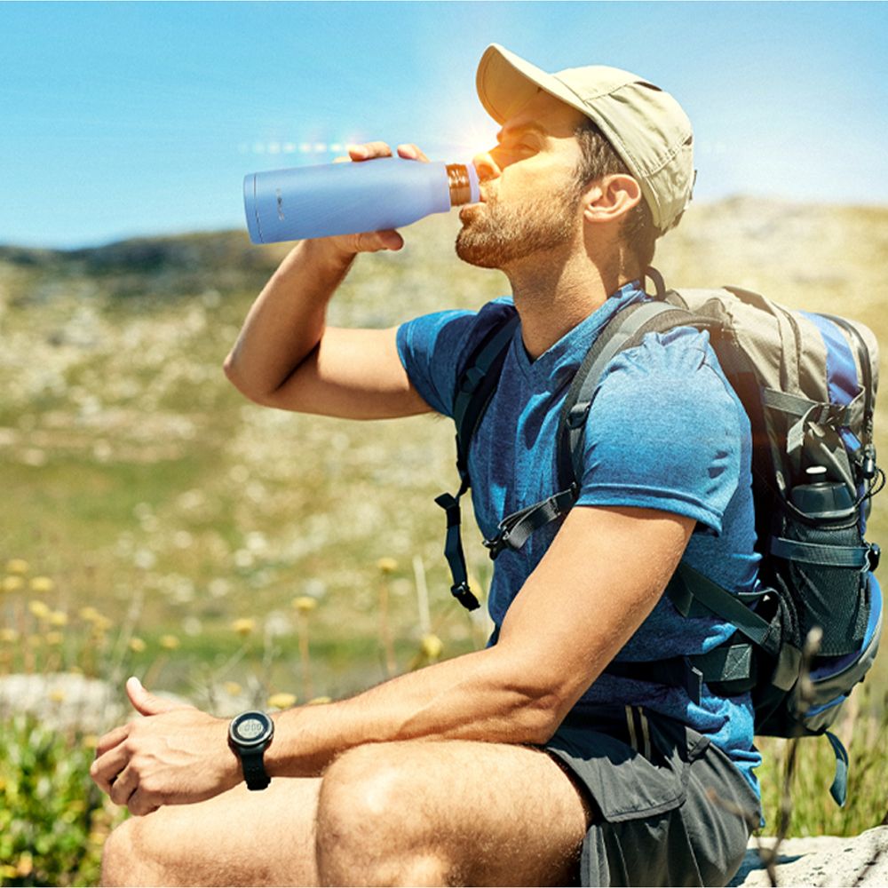 Вместительная бутылка для воды классической формы.