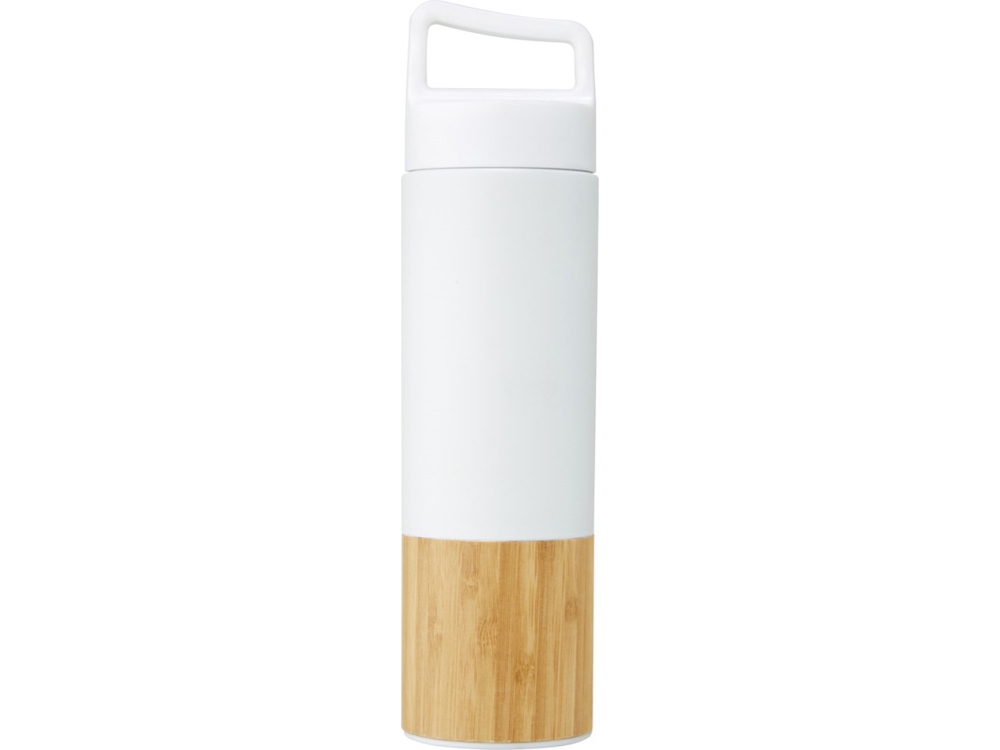 Термобутылка из нержавеющей стали 18/8 с медной вакуумной изоляцией, которая сохраняет напитки горячими или холодными в течение нескольких часов. Имеет модный элемент из бамбука; бутылку легко носить с собой благодаря ручке на верхней части крышки. Бутылка имеет широкое горлышко, поэтому ее легко наполнять и мыть. Протестировано и одобрено согласно немецкому законодательству о безопасности пищевых продуктов (LFGB), а также проверено на содержание фталатов согласно нормам REACH. Объем 540 мл. В коробке из переработанного картона. Нержавеющая сталь, бамбук.