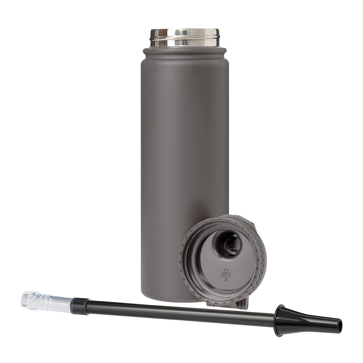 Бутылка оснащена съемной трубочкой. Удобная ручка на крышке облегчает переноску и позволяет прикрепить термобутылку к рюкзаку или сумке.