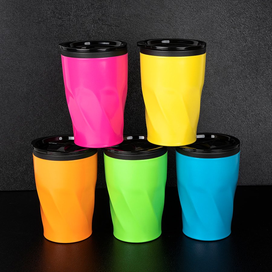 Коллекция термокружек NEON, отличается яркими матовыми цветами и оригинальной формой. Внимание: в этой модели колба выполнена из пищевого термоустойчивого пластика (PP). Внешние стенки стальные. Кружка не является вакуумной. Сохранит температуру горячих напитков - 1,5 часа, холодных 3 часа. Внимание! Конструкция клапана на крышке не предусматривает 100% защиту от протекания. При переворачивании жидкость может вытекать из-под клапана для питья.