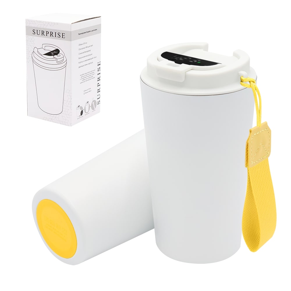 Термокружка Surprise To Go с индикатором, белая/жёлтая можно заказать в нашей компании по самой доступной цене от 1 288.89 рублей.
