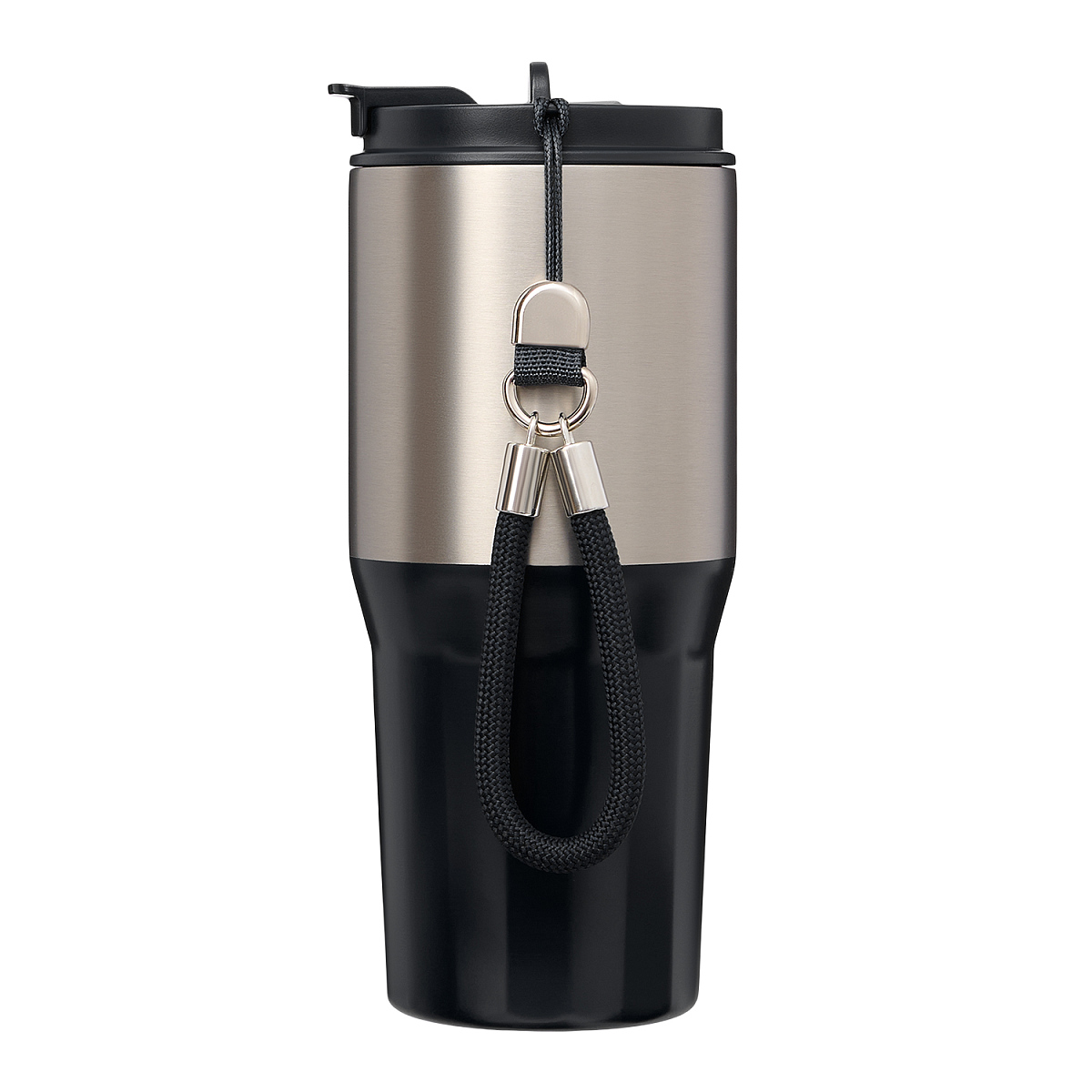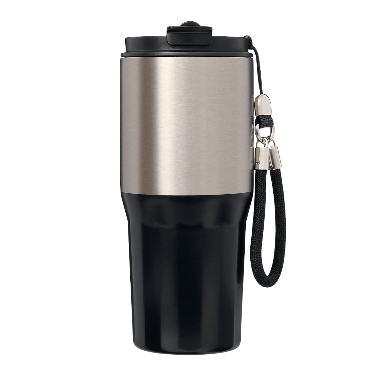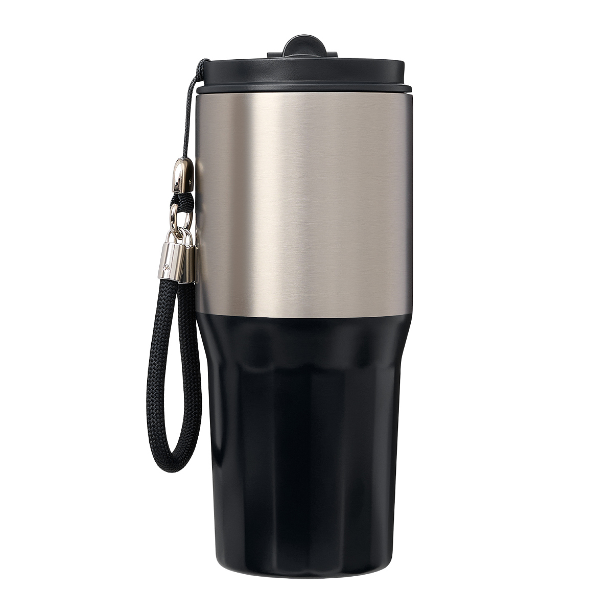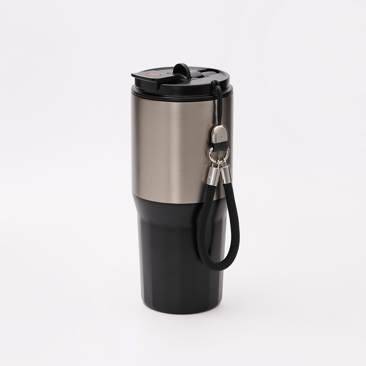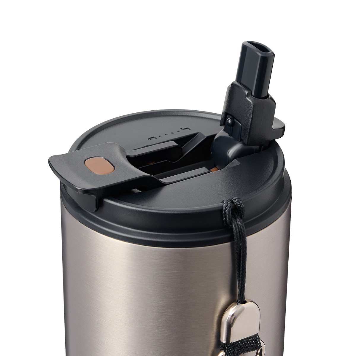 Внутренний слой из пищевой стали 304 марки, которая не впитывает запахи, не окисляется и сохраняет вкус напитка. Внешний корпус надежно защищен 201 сталью с комбинированным покрытием, где матовая текстура сочетается с гладким акцентом. В комплекте идет удобный, прочный и легко снимаемый ремешок, который превращает термокружку в идеальный аксессуар для активного образа жизни.
