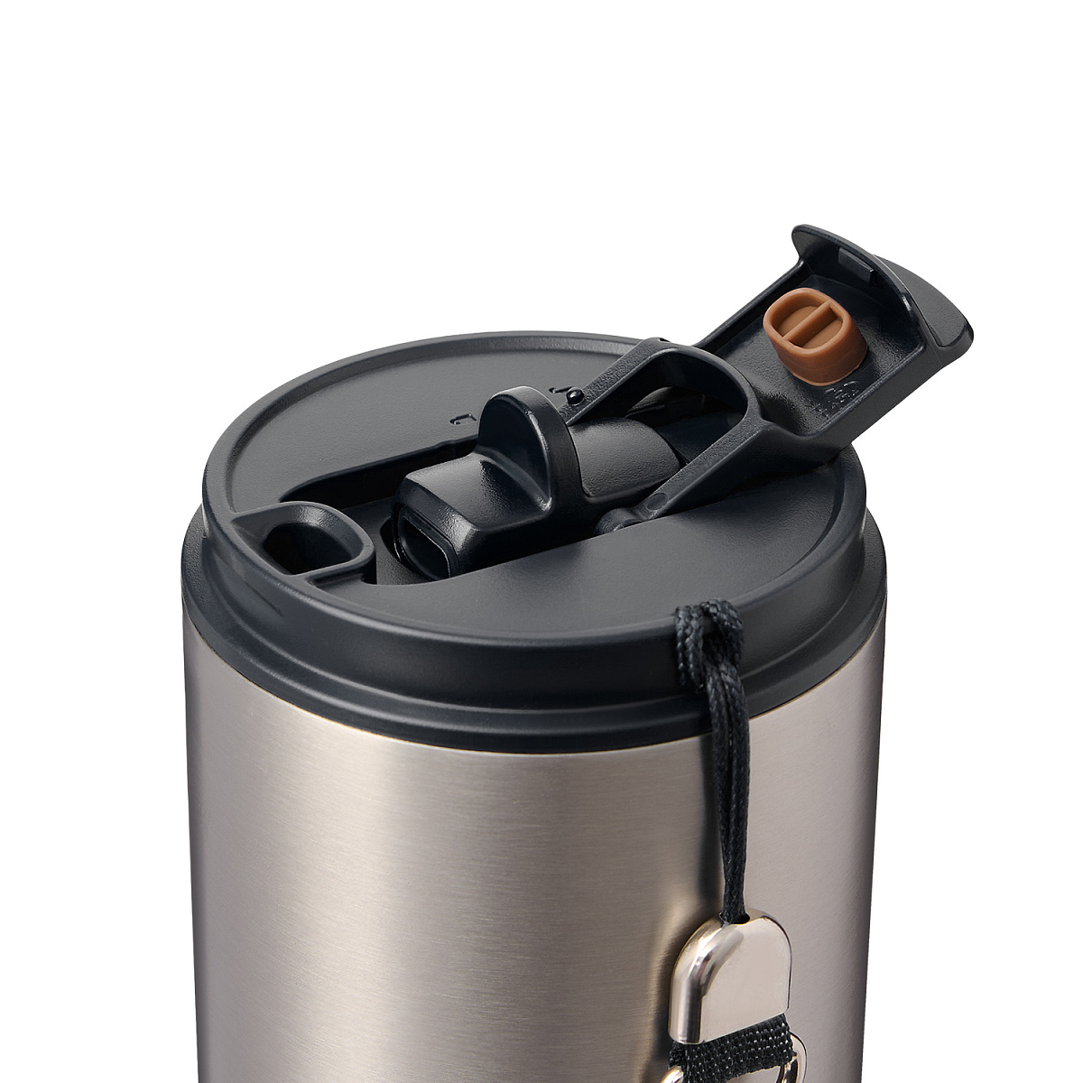Крышка оснащена трубочкой для холодных напитков и классическим клапаном для горячих. Функциональная завинчивающаяся крышка с удобной ручкой и надежным клапаном с силиконовым уплотнителем обеспечивает безопасность в использовании.