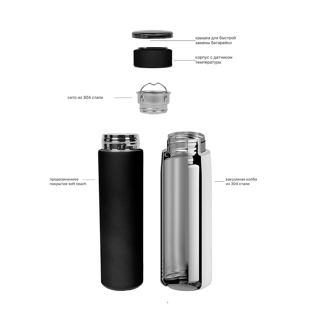 Термос "Бостон next" 500 мл с индикацией температуры, soft touch, сменная батарейка, черный можно заказать в нашей компании по самой доступной цене от 1 499 рублей.