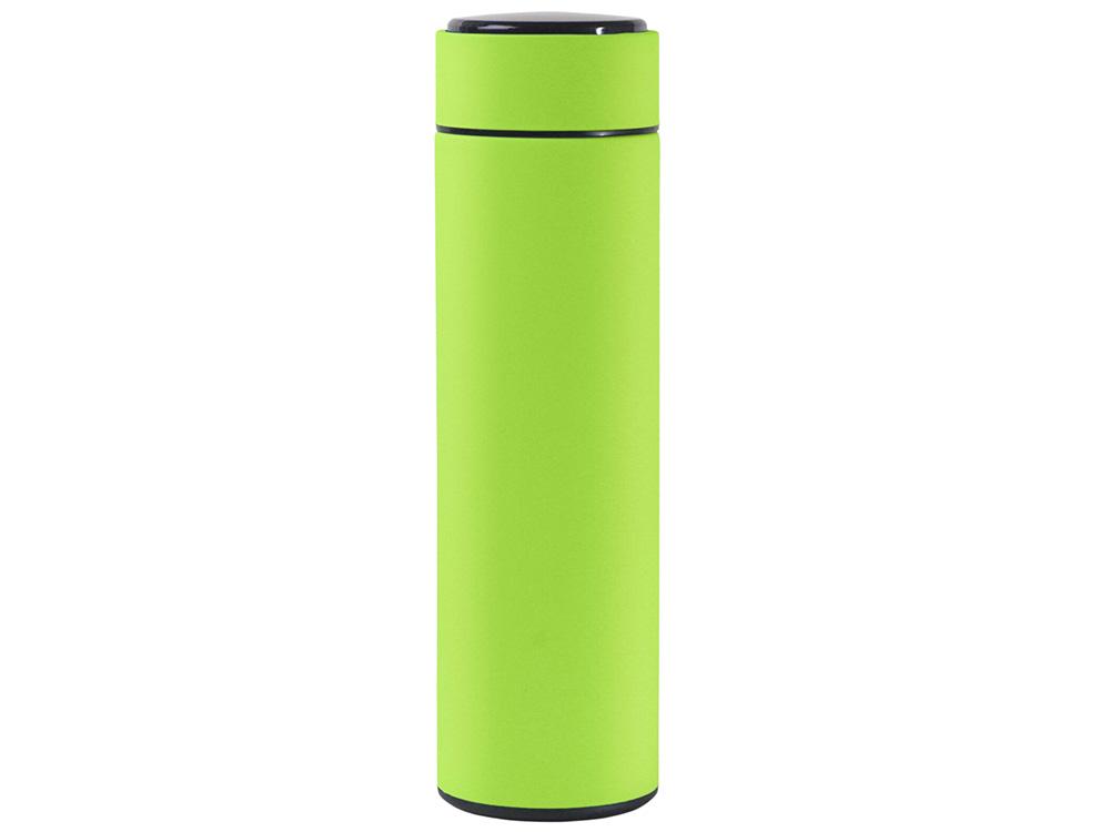 Термос из нержавеющей стали, покрытый цветным soft touch, с крышкой, в которой встроен термометр и LED дисплей, показывающий температуру внутри термоса. Объем: 500 мл. Упаковка: каждый термос в крафт коробке.
