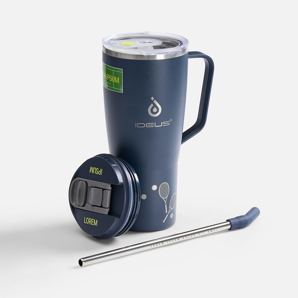 - 2 крышки в комплекте: одна на 100% герметичная с механизмом блокировки отверстия для питья, вторая — с отверстием для трубочки