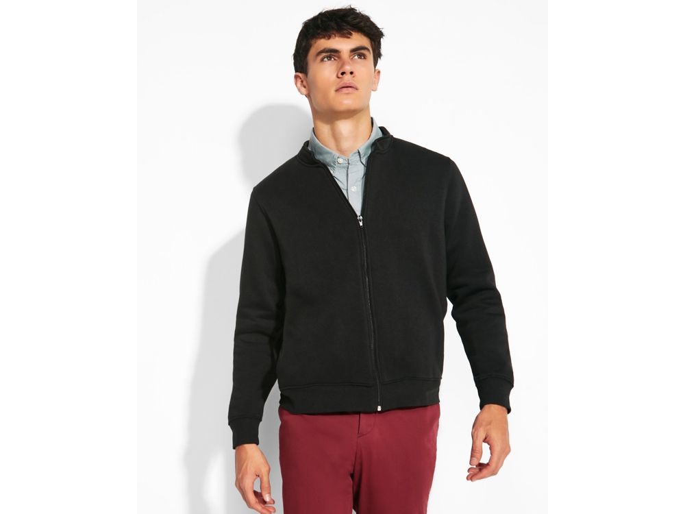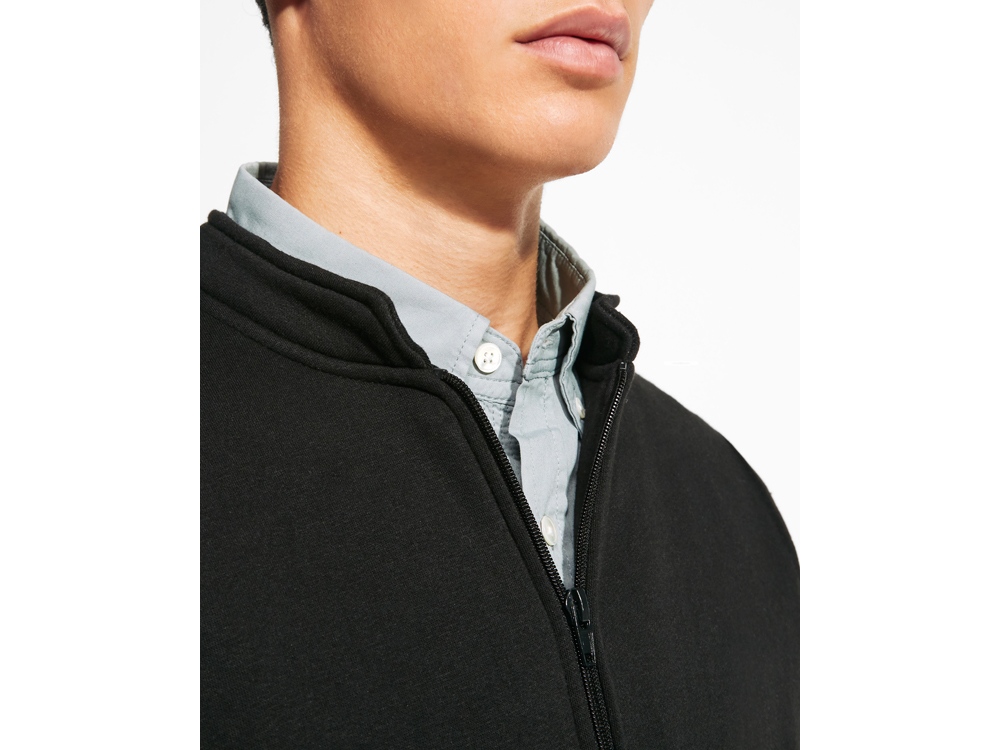 Толстовка на молнии из футера с начесом, с длинными рукавами и воротником-стойкой. Усиленные закрытые внутренние швы горловины. Молния по центру с бегунком в тон. Боковые карманы. Манжеты и низ из риба 1 x 1.
