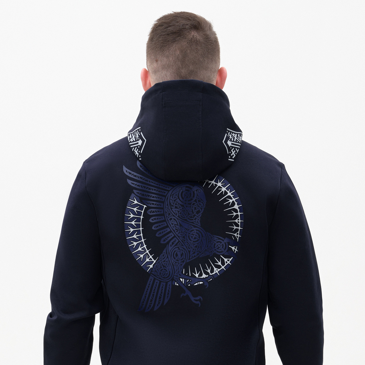 Толстовка сделана из мягкой и прочной ткани интерлок "doubleface", которая приятна к телу и легка в уходе, не растягивается, не выцветает и не деформируется после стирки. Манжеты и низ сделаны из плотной резинки 2х2, благодаря чему вещь держит форму. Карманы на потайных молниях придают толстовке аккуратный вид. Капюшон на подкладке из ткани джерси в тон регулируется шнурками.