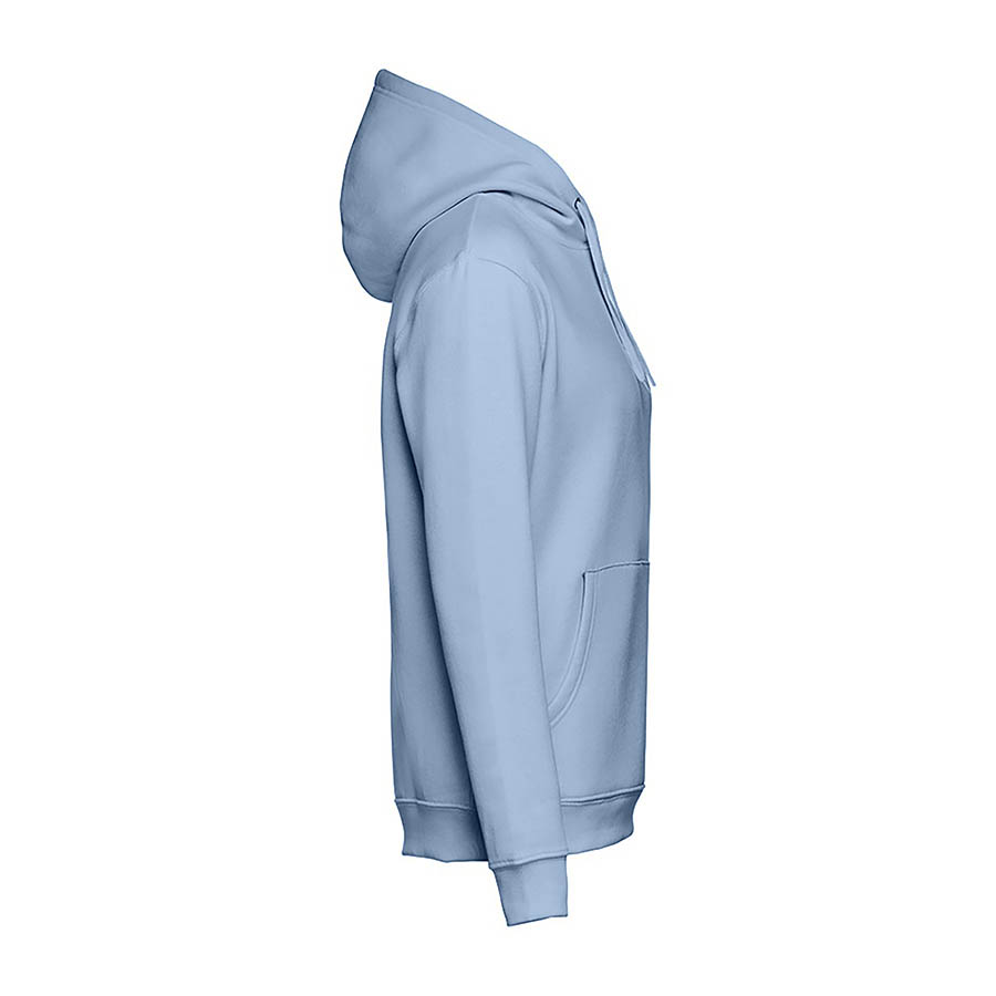 Толстовка унисекс с капюшоном. Внутренняя сторона с начесом. Манжеты и низ изделия обработаны рибом 1х1. Карман-кенгуру. Капюшон с отверстиями и кулиской в тон изделия.