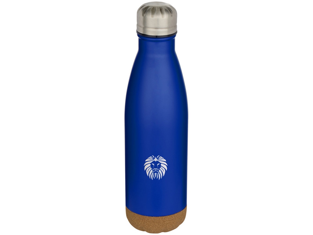 Бутылка для воды из нержавеющей стали с вакуумной изоляцией и пробковыми деталями в нижней части. Двойная изоляция стенок сохраняет напитки горячими или холодными в течение нескольких часов. Поставляется в подарочной коробке из переработанного картона. Объем: 500 мл. 90% нержавеющая сталь, 10% Пробка. упаковка FSC Mix Credit P5.1 CU-COC-877277.